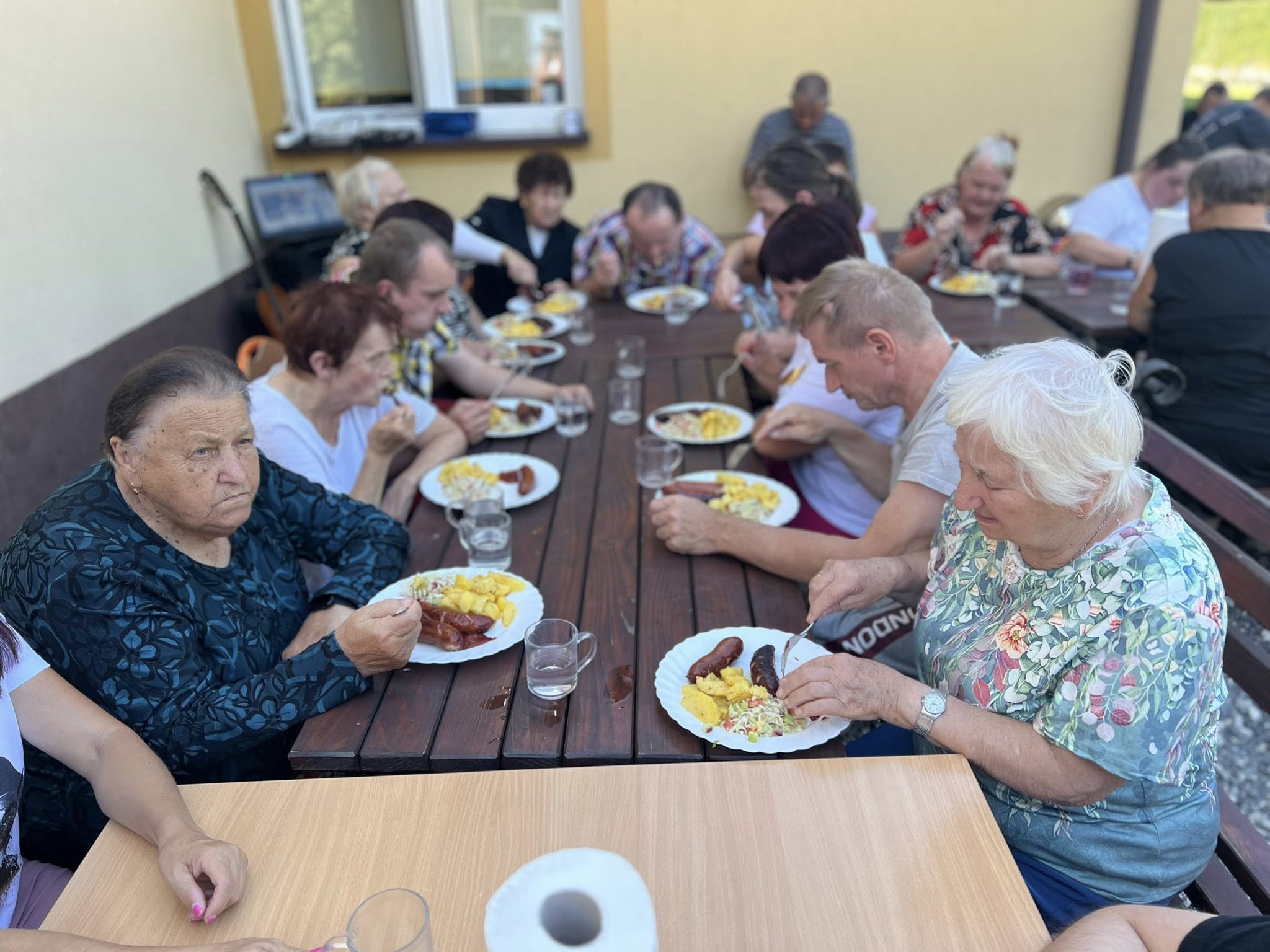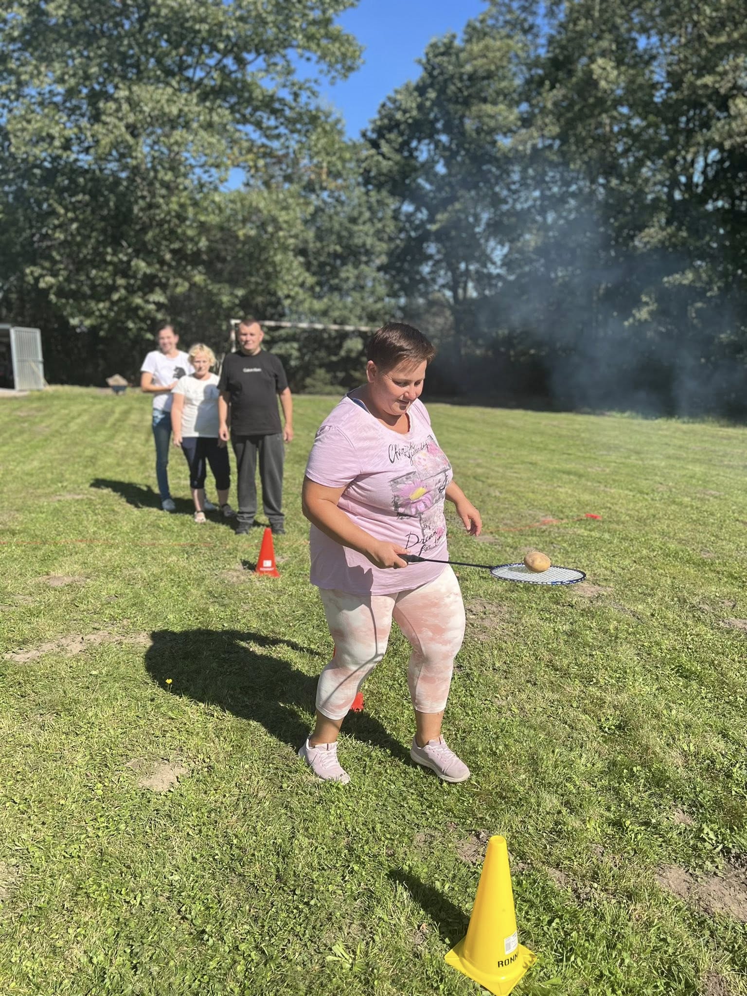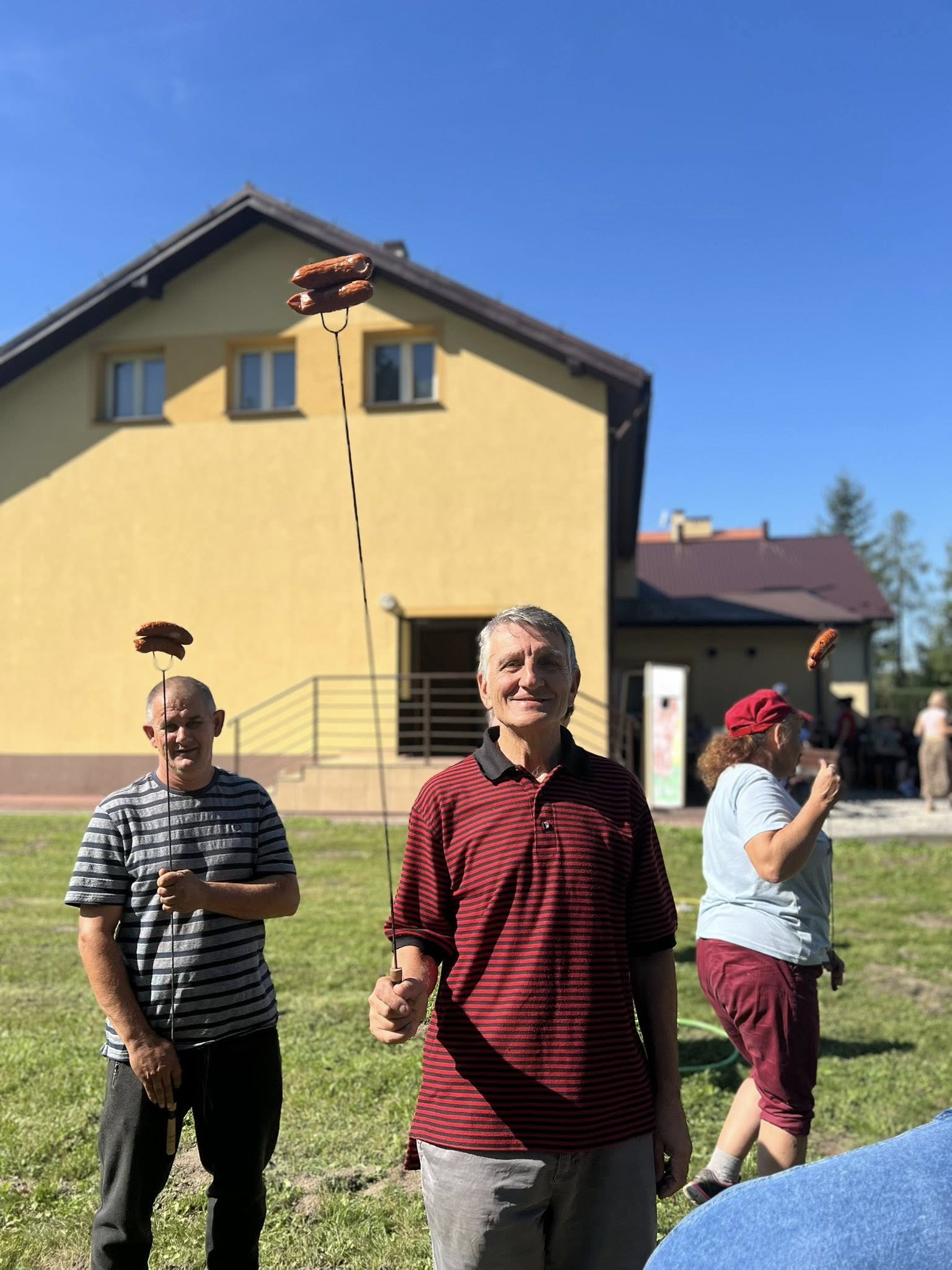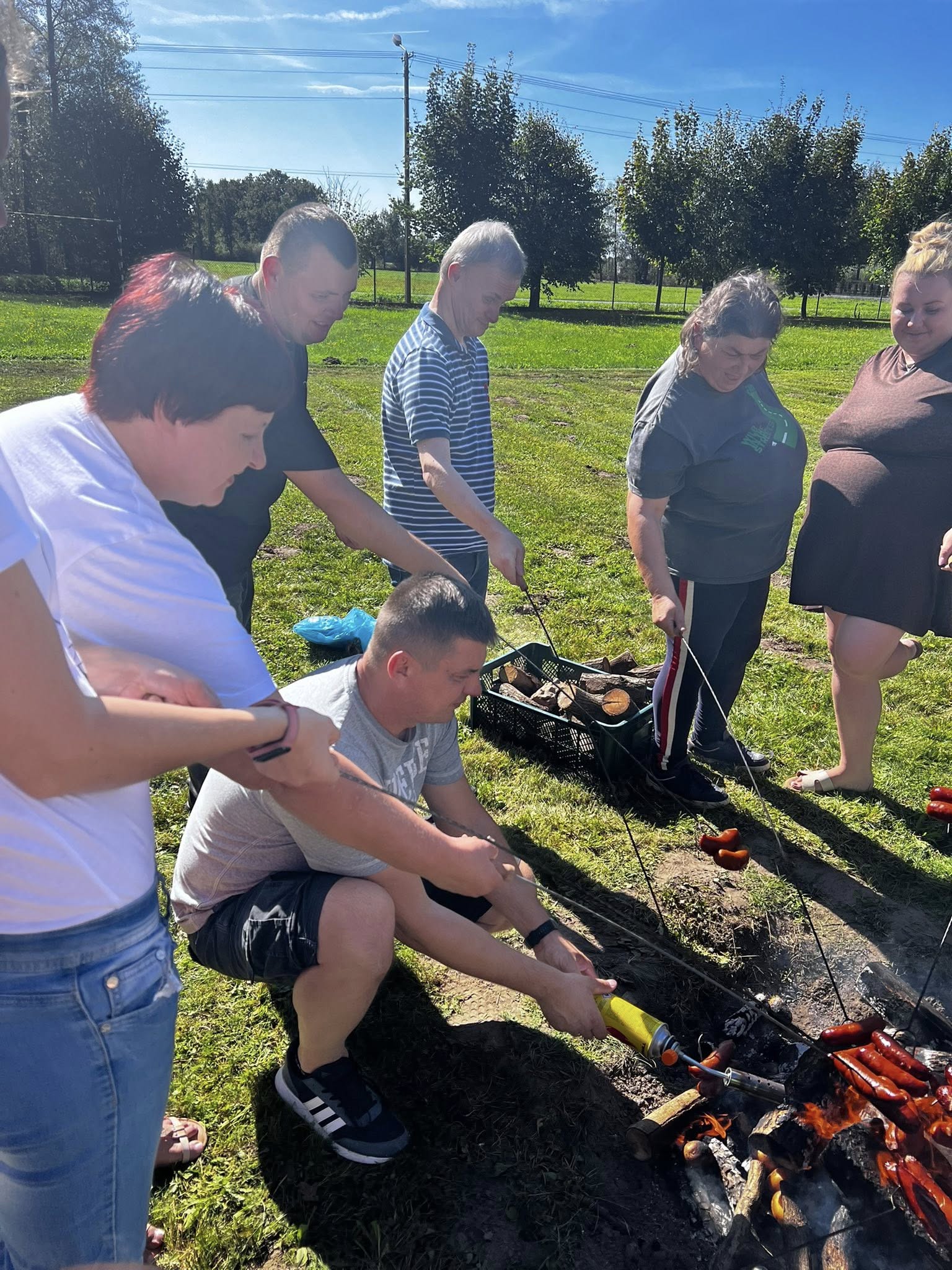 Piekliśmy też kiełbaski. Nie zabrakło wesołych konkurencji i zabaw ruchowych z udziałem ziemniaka w roli głównej. Po sportowych zmaganiach przyszedł czas na degustację i wspólną biesiadę. Tego dnia towarzyszyła nam piękna, słoneczna pogoda.