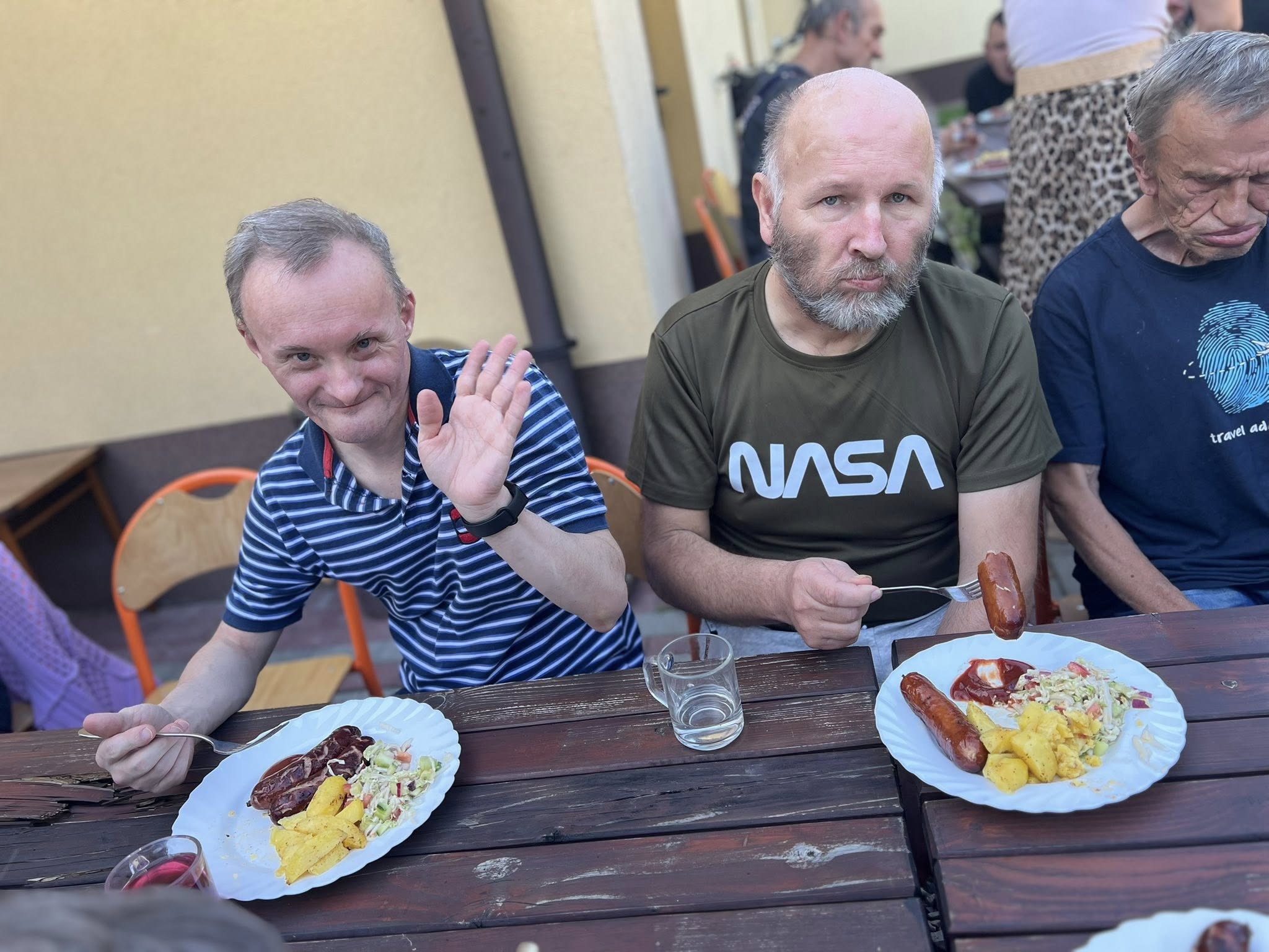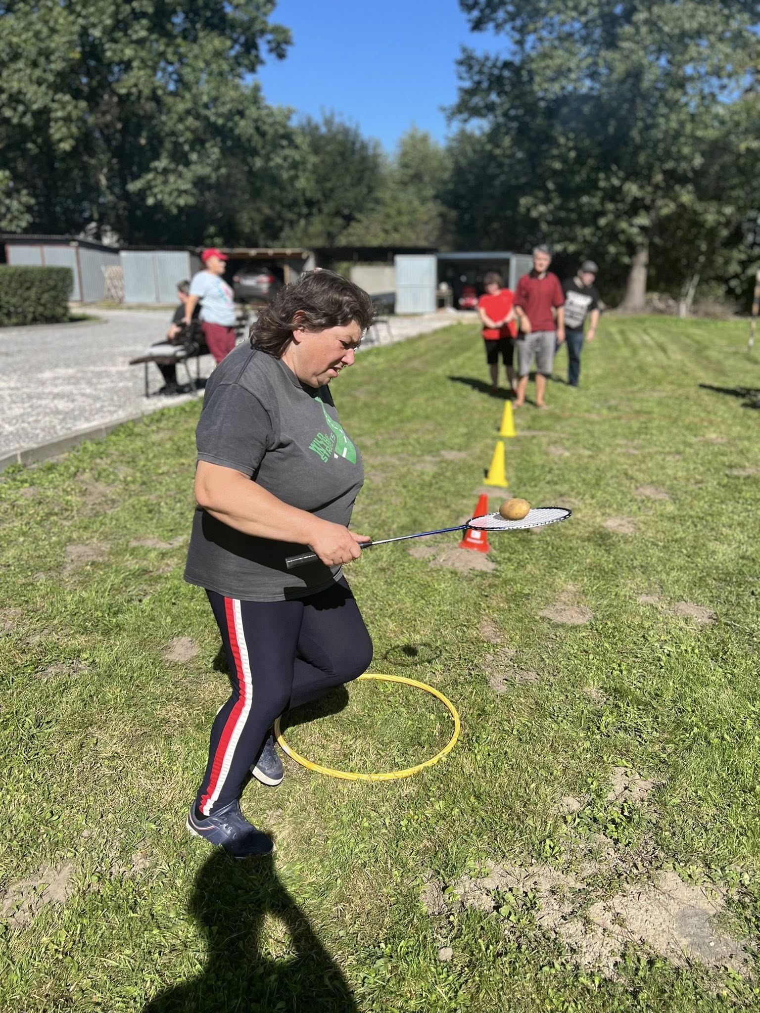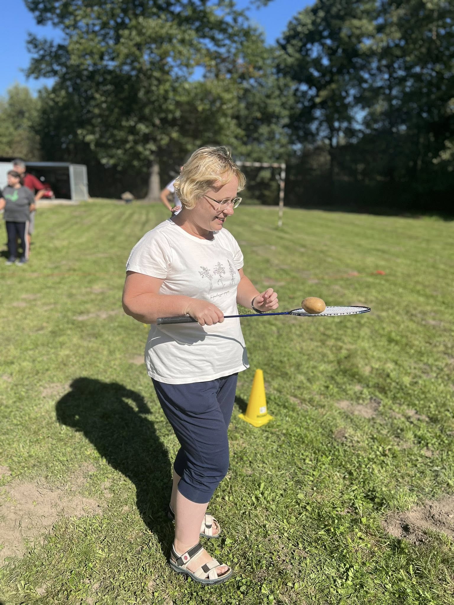 Piekliśmy też kiełbaski. Nie zabrakło wesołych konkurencji i zabaw ruchowych z udziałem ziemniaka w roli głównej. Po sportowych zmaganiach przyszedł czas na degustację i wspólną biesiadę. Tego dnia towarzyszyła nam piękna, słoneczna pogoda.