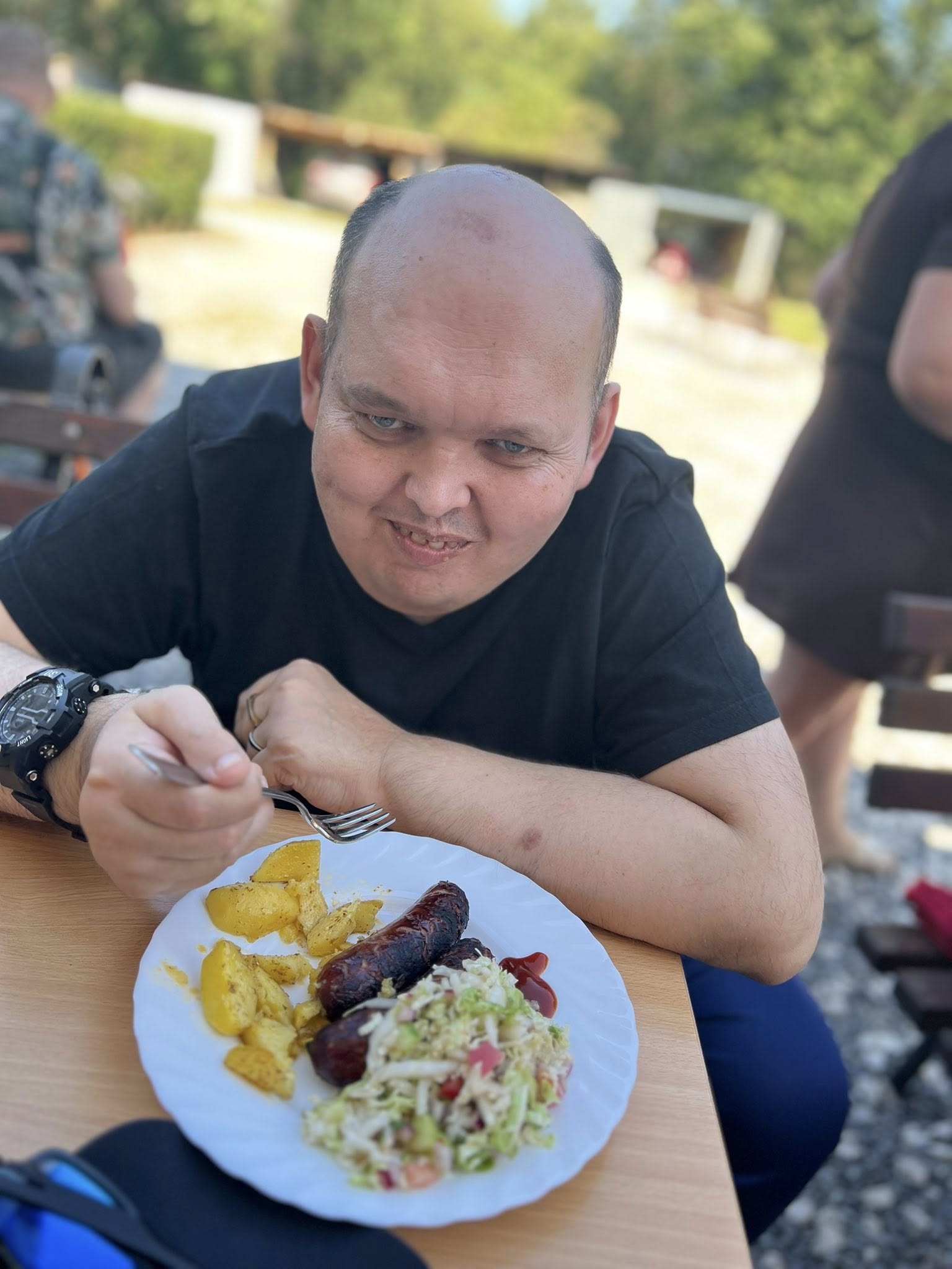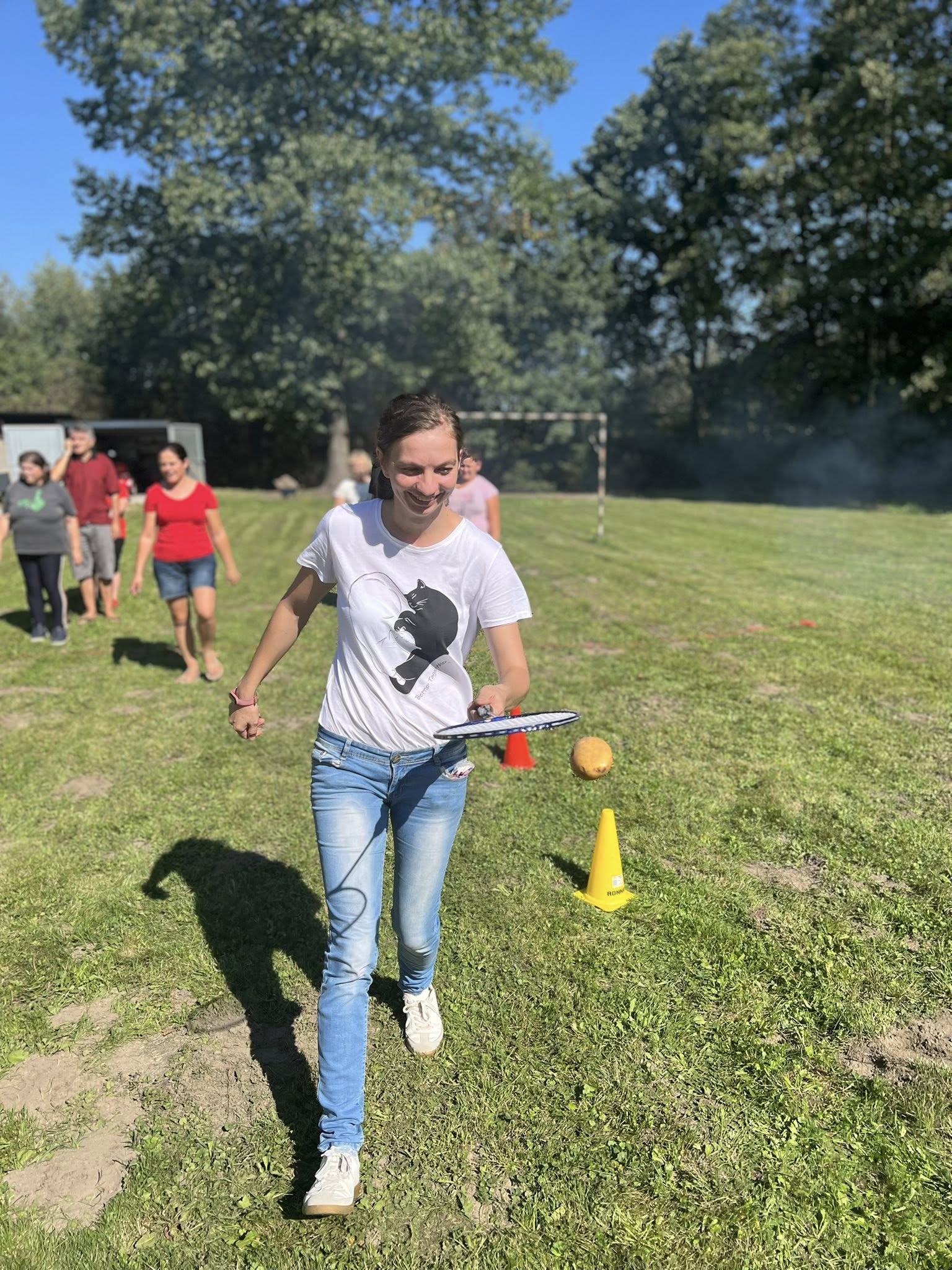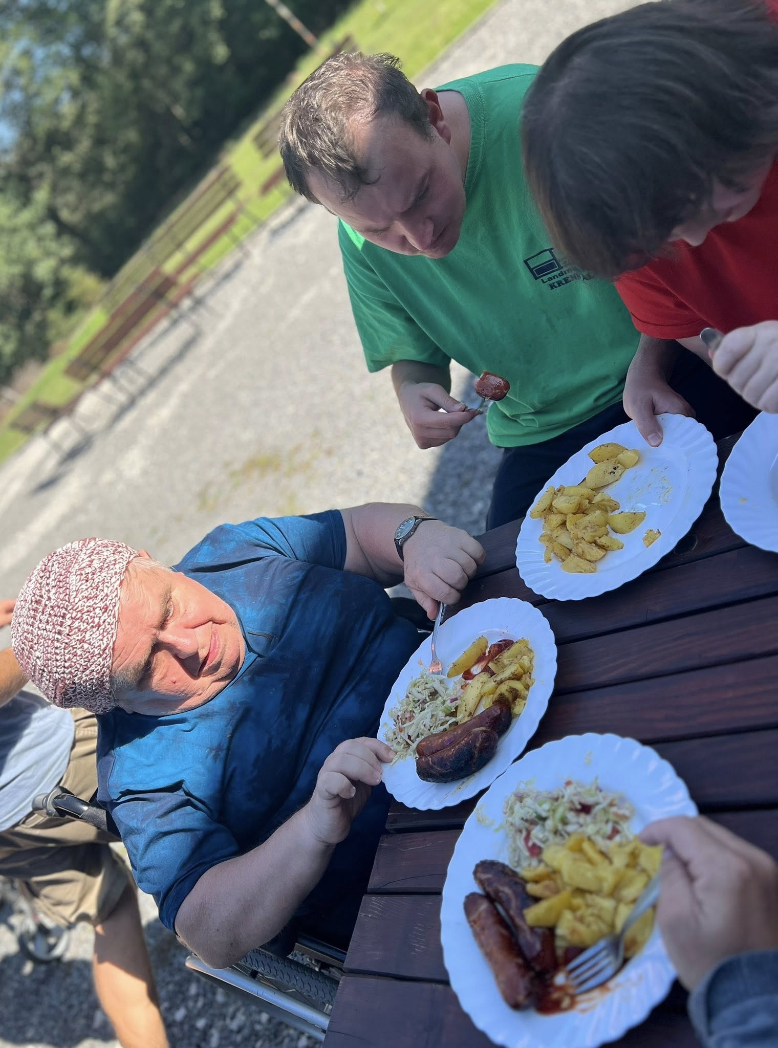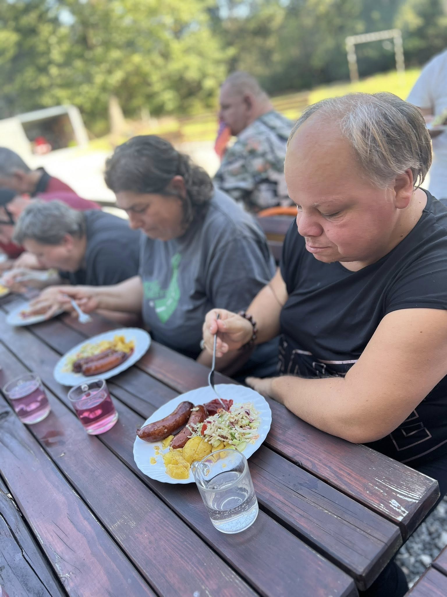 Piekliśmy też kiełbaski. Nie zabrakło wesołych konkurencji i zabaw ruchowych z udziałem ziemniaka w roli głównej. Po sportowych zmaganiach przyszedł czas na degustację i wspólną biesiadę. Tego dnia towarzyszyła nam piękna, słoneczna pogoda.