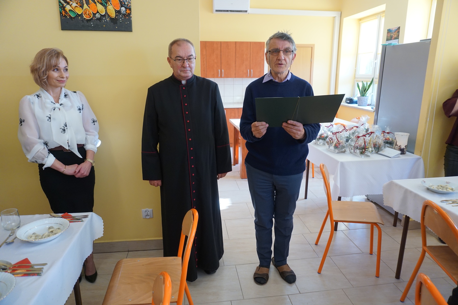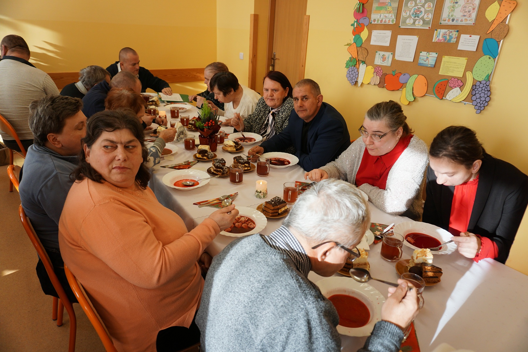 Tego dnia towarzyszyli nam również członkowie Zarządu Stowarzyszenia „Otwarte Serce” oraz przedstawiciele władz Szczucina. Na naszym wigilijnym stole nie zabrakło tradycyjnych potraw, a także symbolicznego opłatka. Czas upłynął na wspólnym śpiewie kolęd, a także wspomnieniach minionego roku.