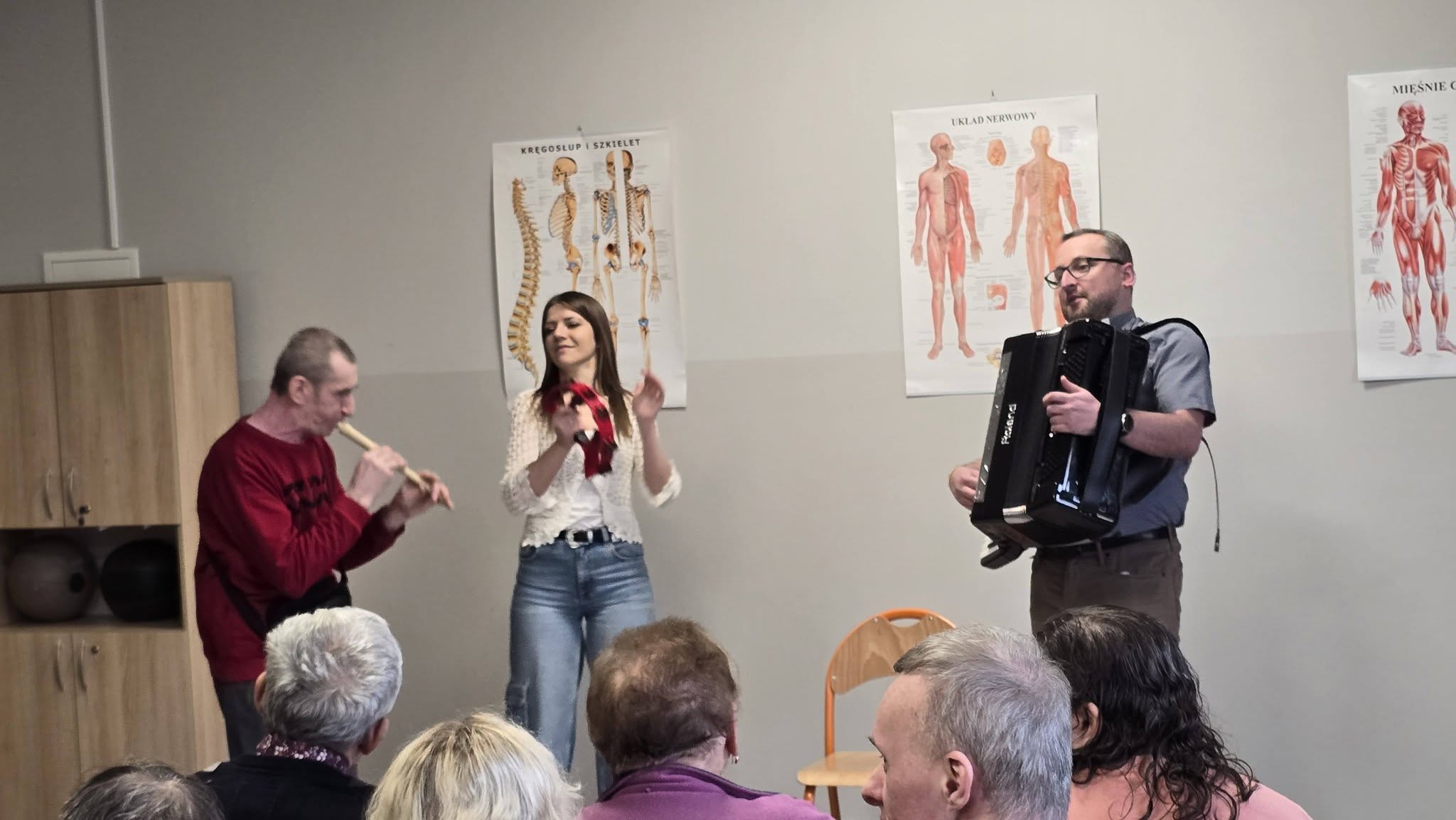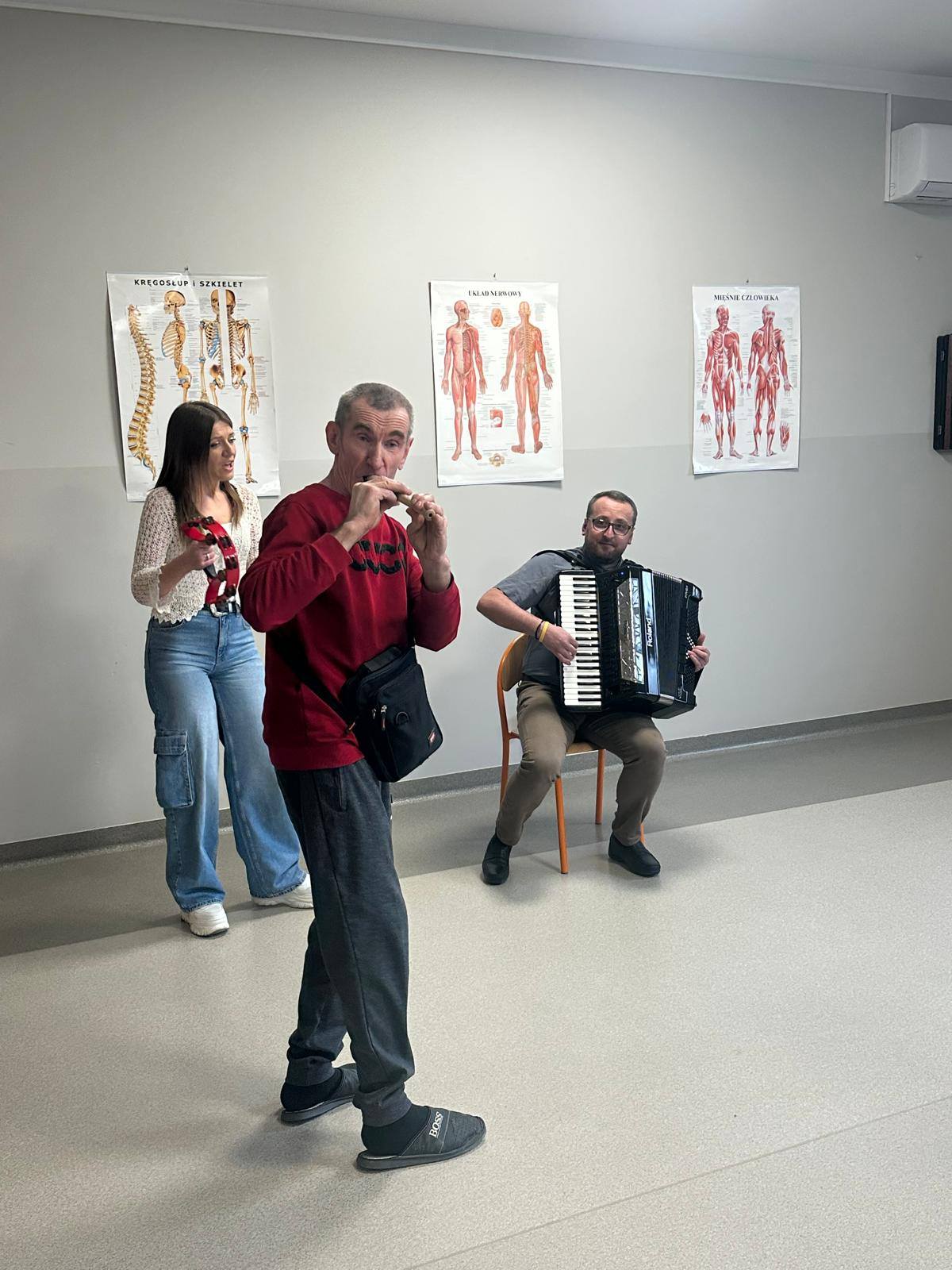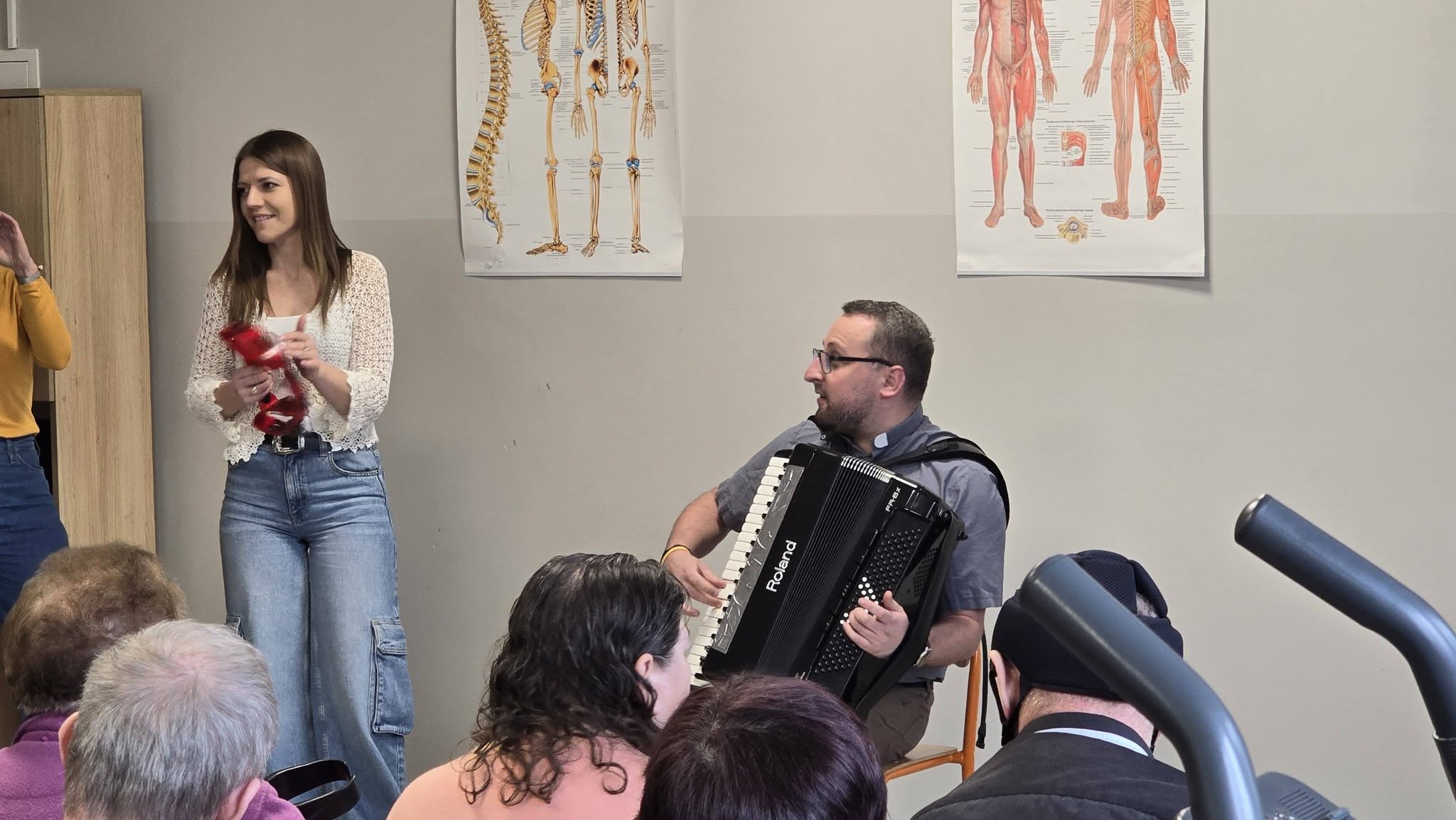 Oprawę muzyczną zapewnił ksiądz Piotr, który przygrywał na akordeonie. Wszyscy chętnie włączali się do wspólnego muzykowania, tworząc wyjątkowy klimat.