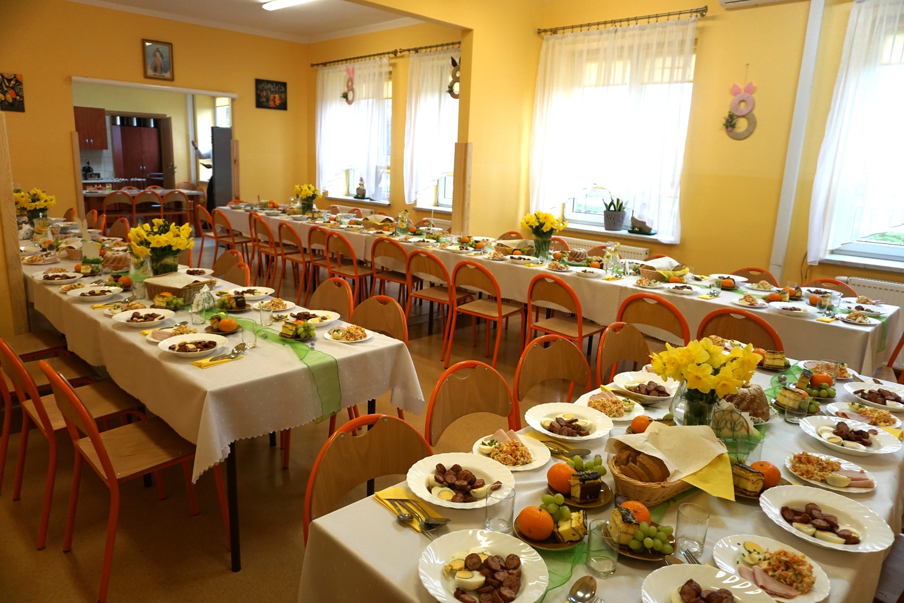 Trwając w oktawie wielkanocnej w dniu 9 kwietnia 2026r. w naszej placówce odbyło się uroczyste śniadanie wielkanocne. Tego dnia towarzyszyli nam zaproszeni goście, a na stołach nie zabrakło tradycyjnych, pysznych potraw.