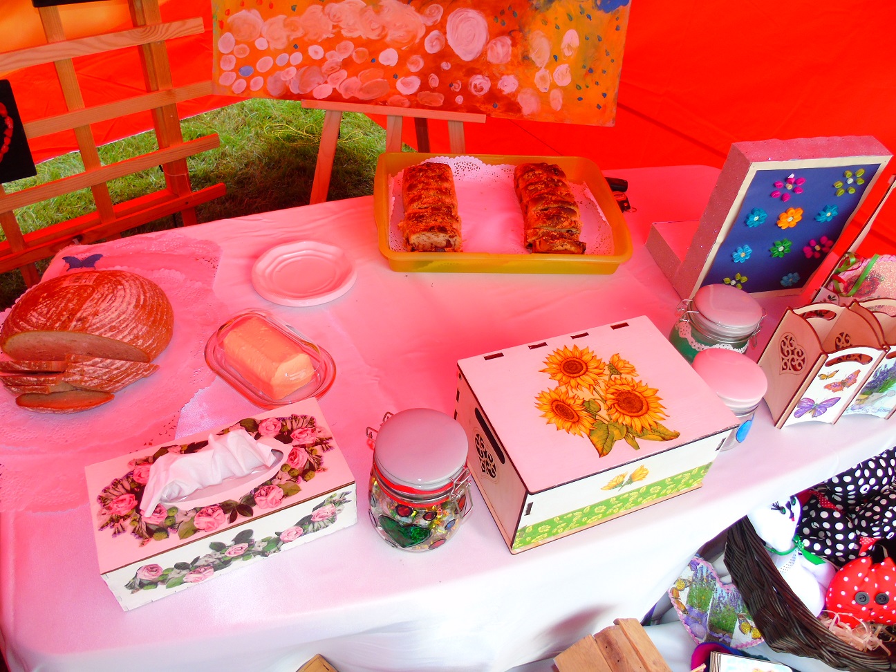 Tradycyjnie zaprezentowaliśmy prace naszych Uczestników wykonane podczas zajęć terapeutycznych. Na stoisku można było nabyć ulotki oraz długopisy promujące placówkę, a także poczęstować się różnymi słodkościami. Pomimo pochmurnej i deszczowej pogody nasze stoisko cieszyło się dużym zainteresowaniem, odwiedzający z zaciekawieniem oglądali prezentowane prace.