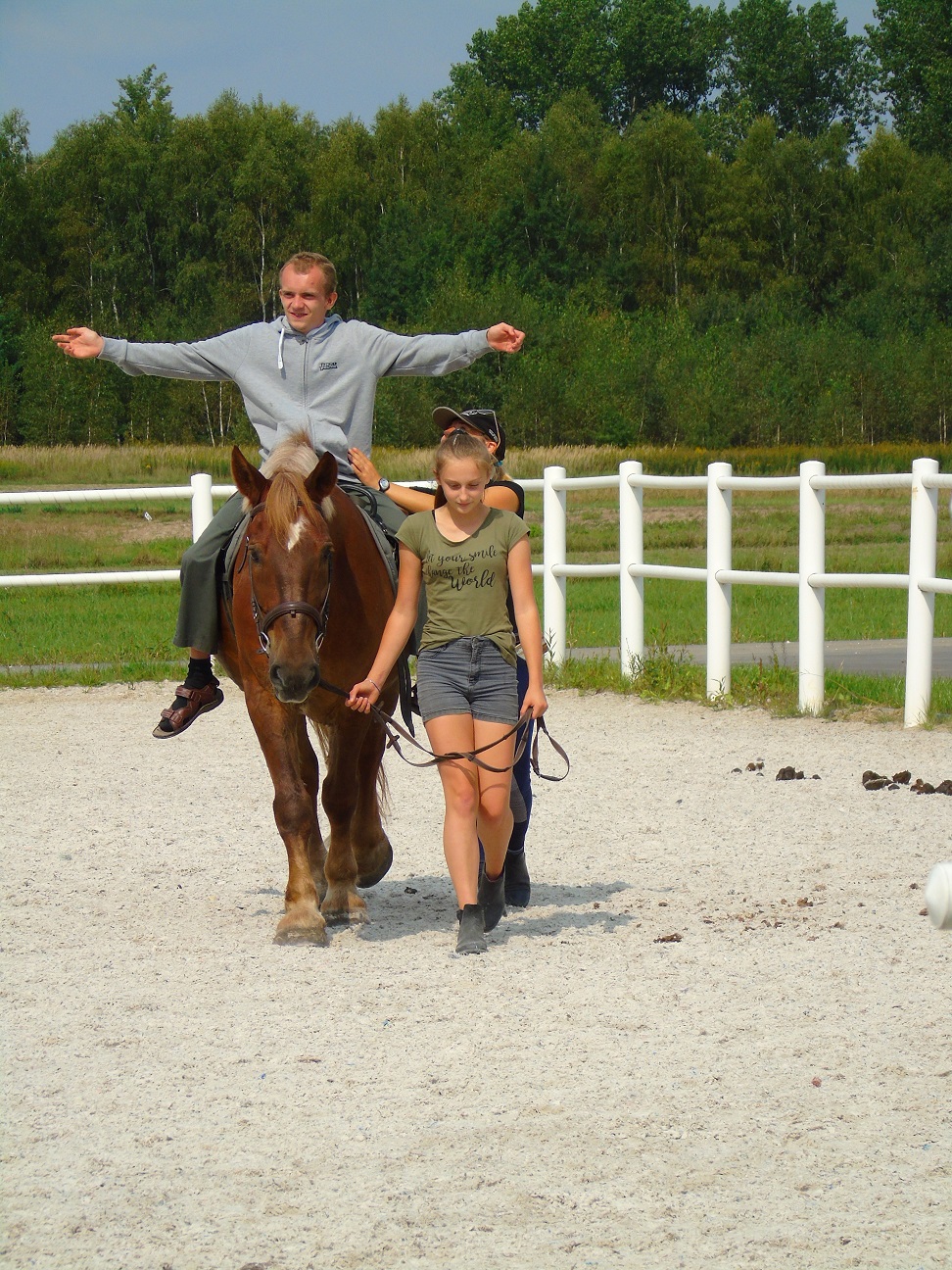 29 sierpnia 2018r. kolejna grupa Uczestników miała okazję skorzystać z zajęć hipoterapii. Już samo przygotowywanie koni do zajęć sprawiło im mnóstwo radości, czesali konie z prawdziwym zaangażowaniem i poświęceniem.