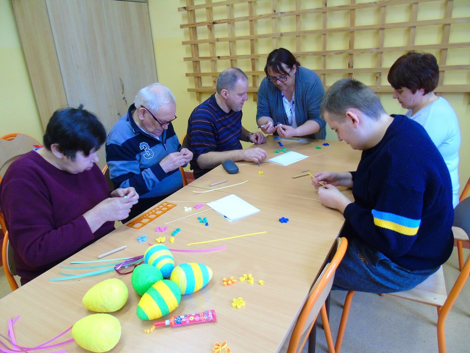 Pracownia artystyczna w tym tygodniu zaoferowała naszym Uczestnikom kolejne warsztaty artystyczne – tym razem był to quilling. Co prawda Uczestnicy już znają tą technikę, ale postanowili rozwinąć swoje umiejętności – pomogła im w tym Pani Adrianna, która poprowadziła warsztaty.
