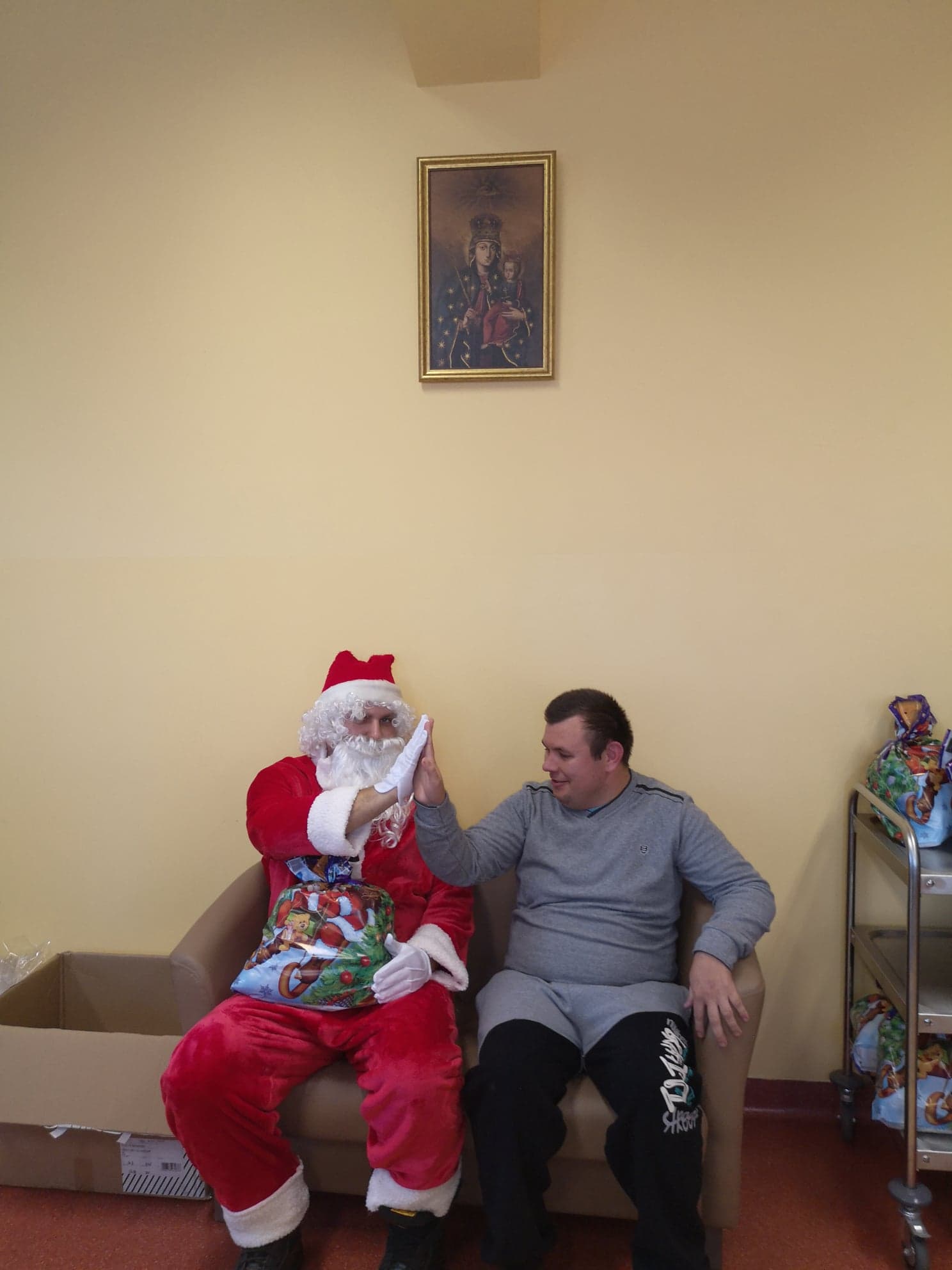 Jak co roku, tak również i dziś w naszej placówce odwiedził nas Mikołaj. Bezpośrednio po Mszy pierwszopiątkowej pojawił się w naszej świetlicy z mnóstwem podarunków. Każdy z Uczestników zapewniał że był grzeczny to też nikomu nie zabrakło prezentu.