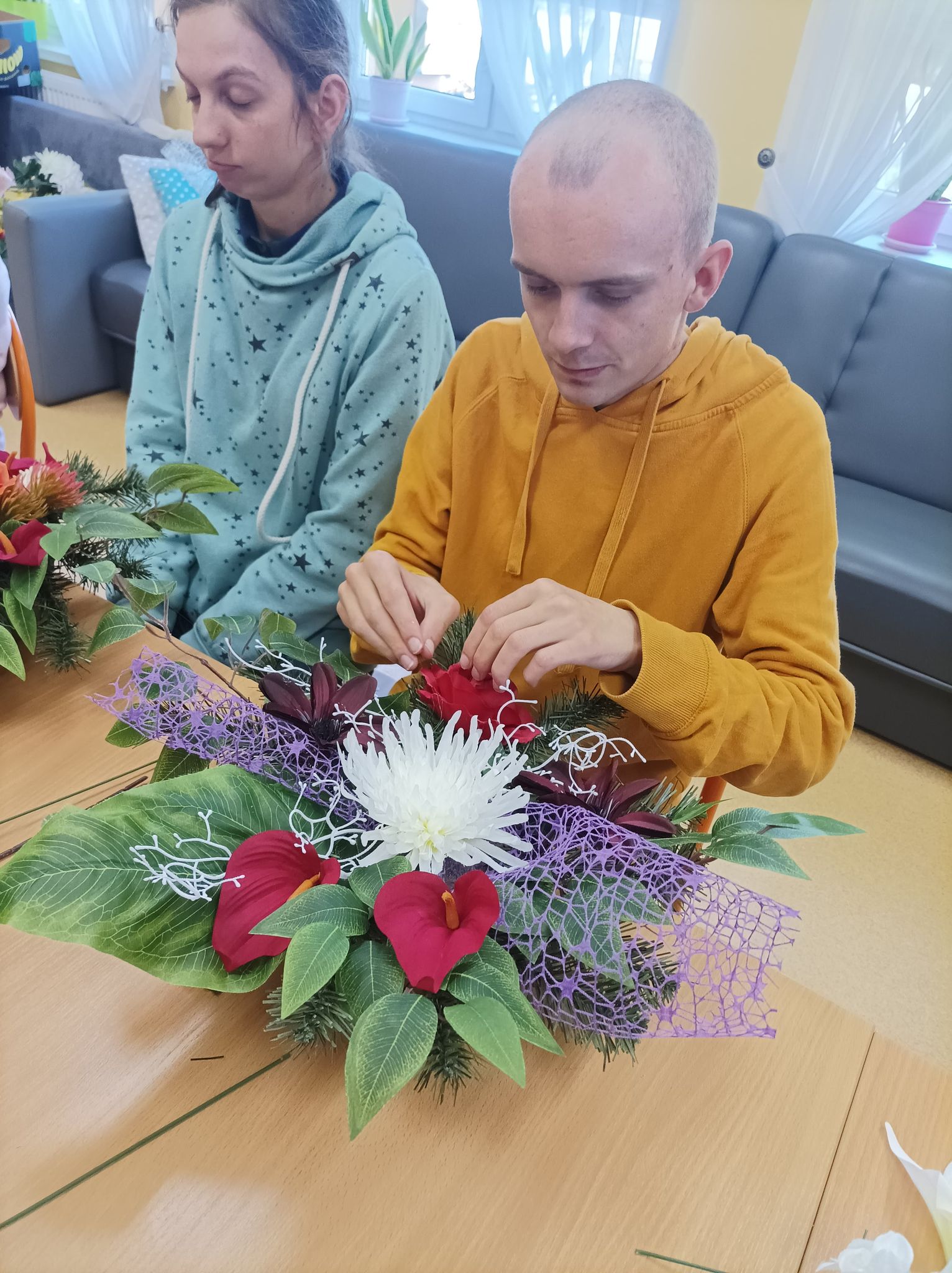 W ubiegłym tygodniu nasza świetlica zamieniła się w warsztat florystyczny i przez kilka dni tworzyły się tam piękne kompozycje kwiatowe, z którymi Uczestnicy pójdą na groby swoich najbliższych. Każdy mógł stworzyć swoją własną kompozycję z wybranymi kolorami i dodatkami.