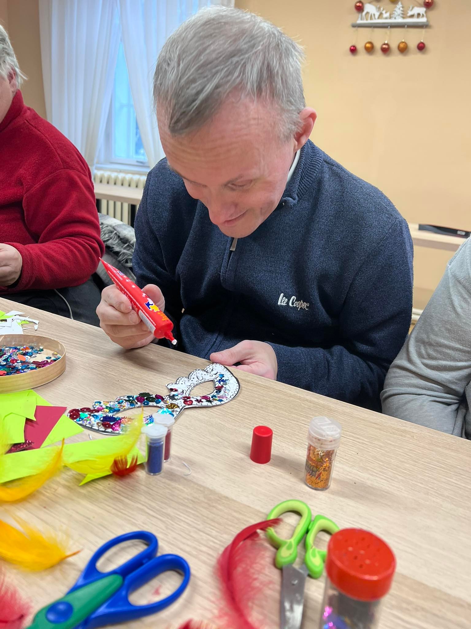 19 stycznia 2023r. odpowiadając na zaproszenie Dyrekcji z Centrum Polonii w Brniu, grupa naszych Uczestników wybrała się na warsztaty artystyczne. Podczas warsztatów Uczestnicy wykonali maseczki karnawałowe, które z pewnością wykorzystają podczas zbliżającej się zabawy choinkowej.