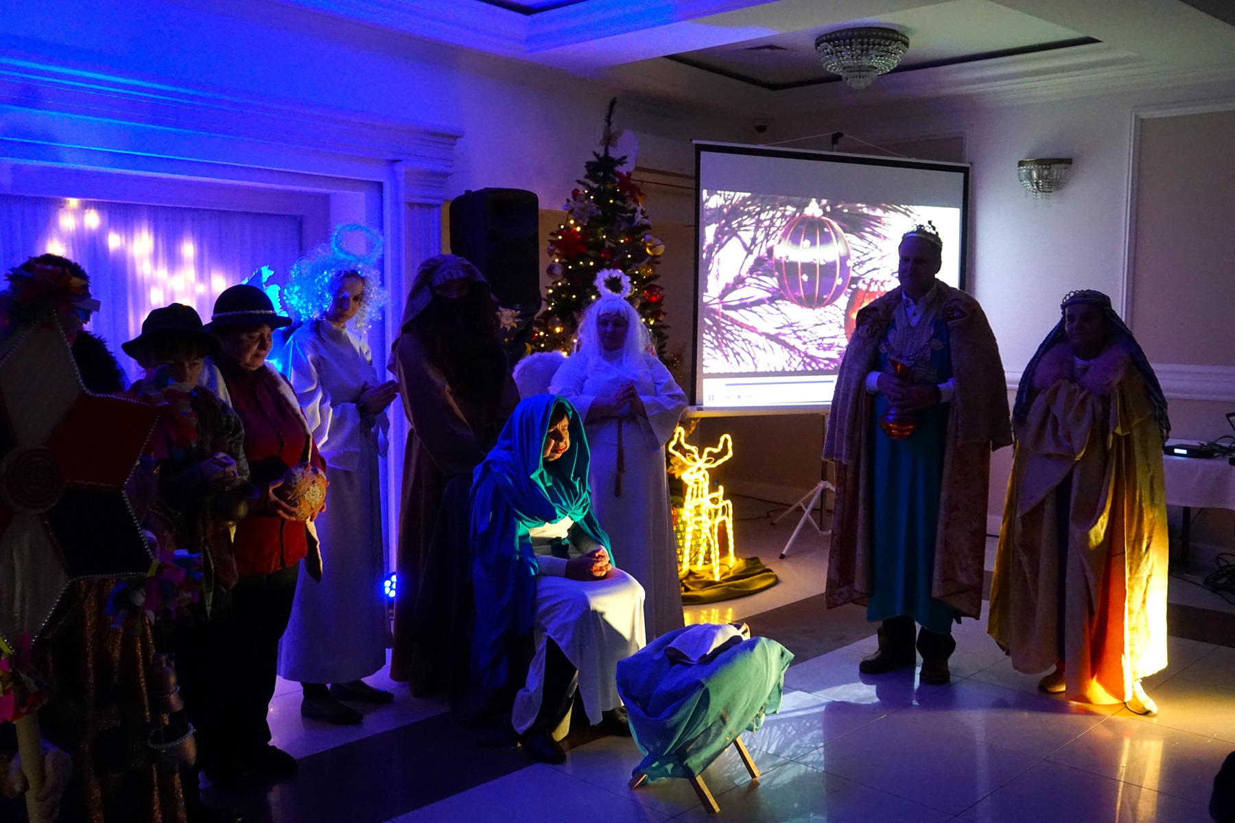 Uroczystość rozpoczęliśmy od przedstawienia jasełkowego, które wprowadziło już wszystkich w prawdziwie świąteczny nastrój. Na stołach obok opłatka pojawiły się tradycyjne wigilijne potrawy. Cieszymy się, że mogliśmy się spotkać w tak dużym gronie i wymienić się świątecznymi życzeniami.