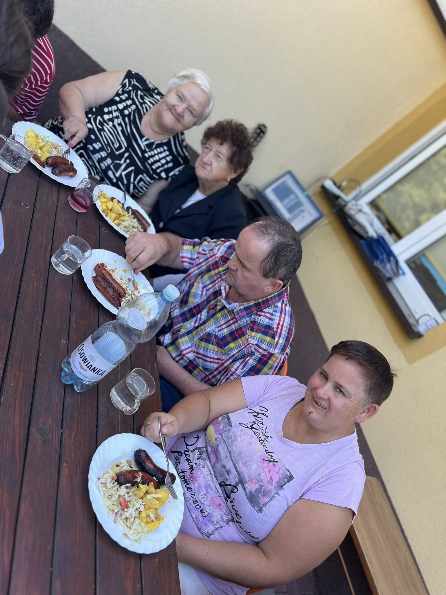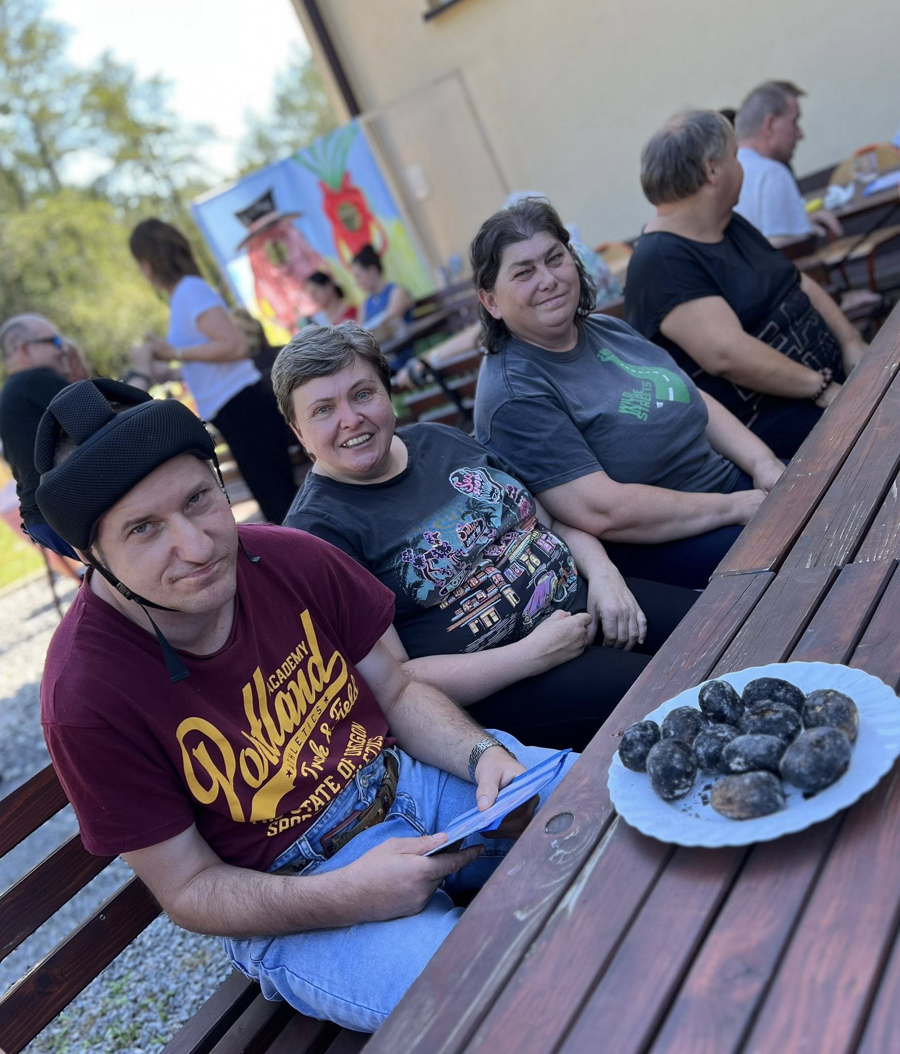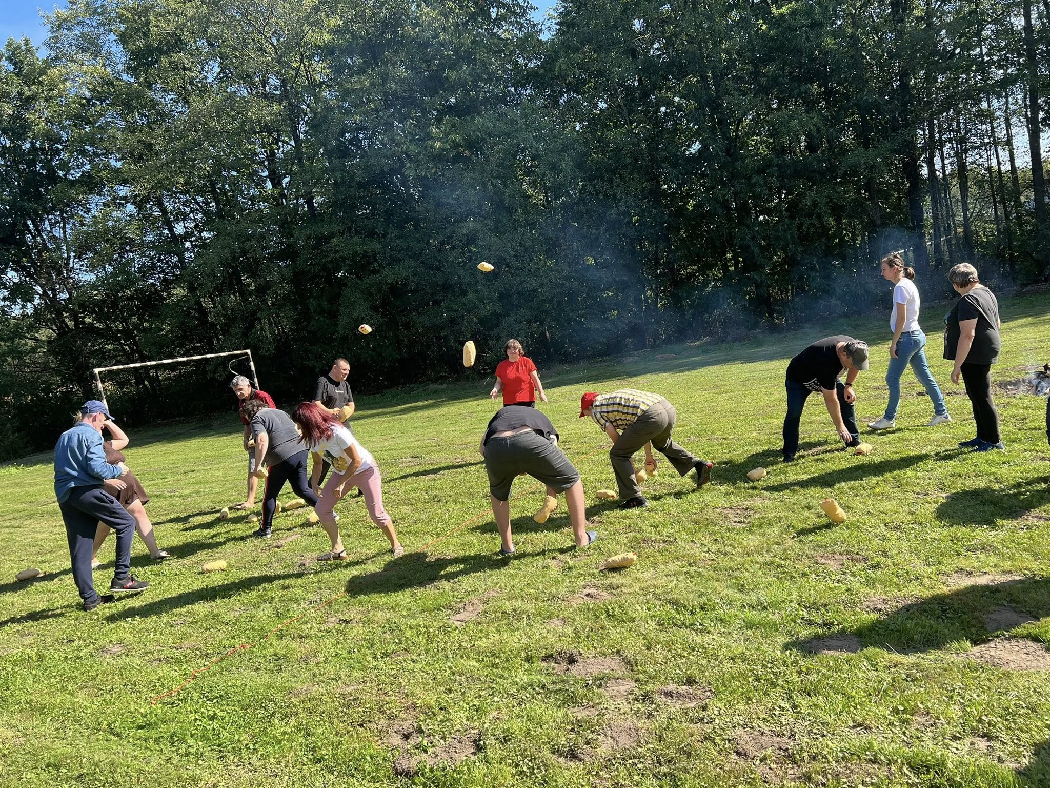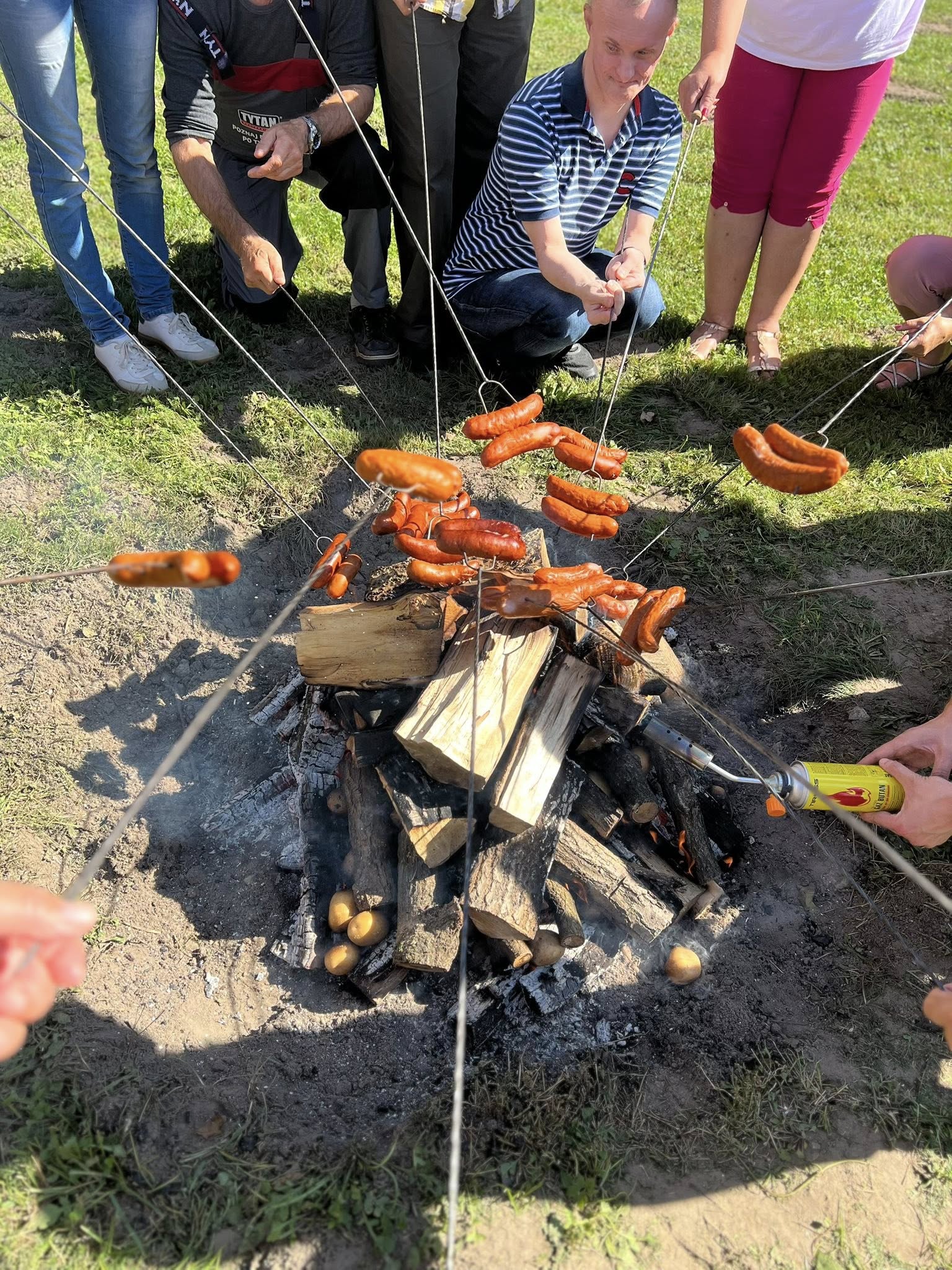 Piekliśmy też kiełbaski. Nie zabrakło wesołych konkurencji i zabaw ruchowych z udziałem ziemniaka w roli głównej. Po sportowych zmaganiach przyszedł czas na degustację i wspólną biesiadę. Tego dnia towarzyszyła nam piękna, słoneczna pogoda.