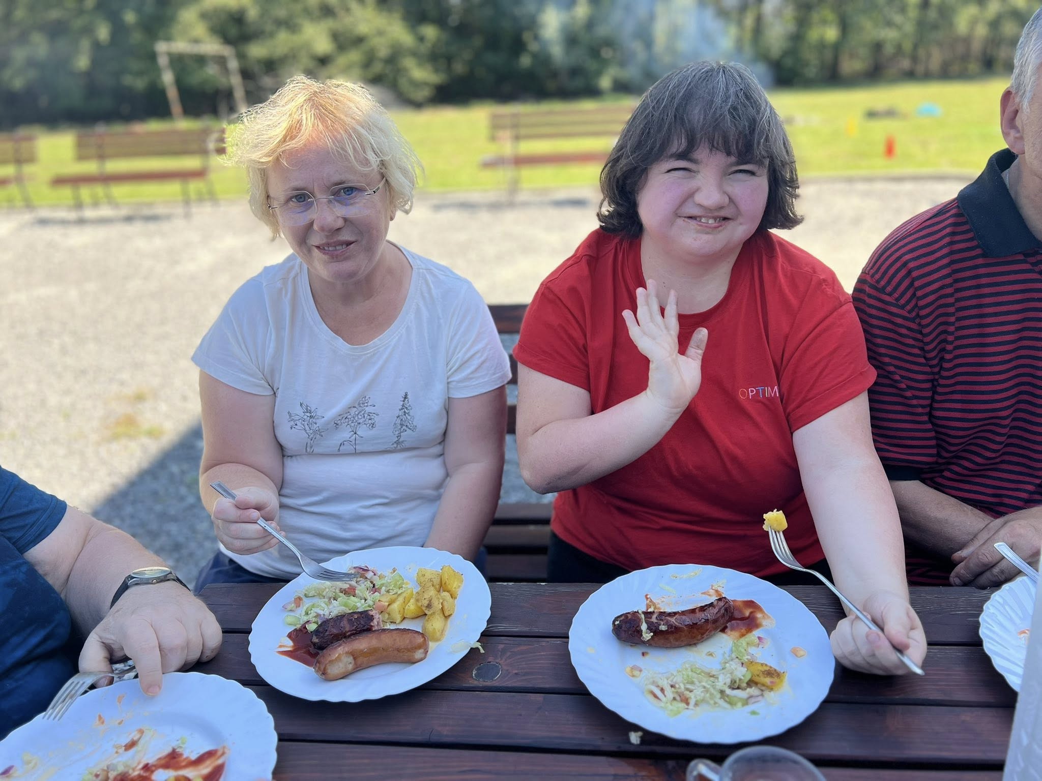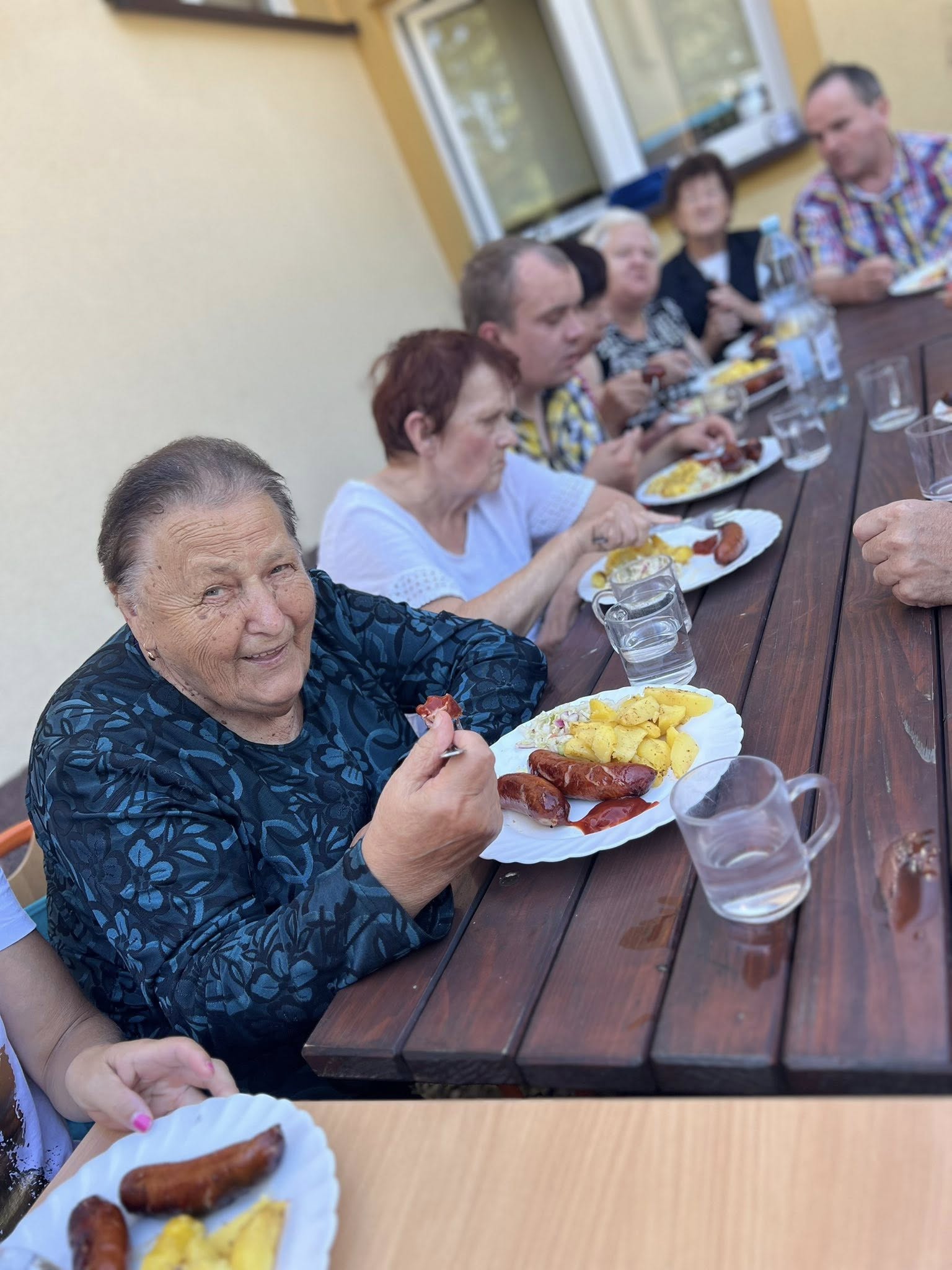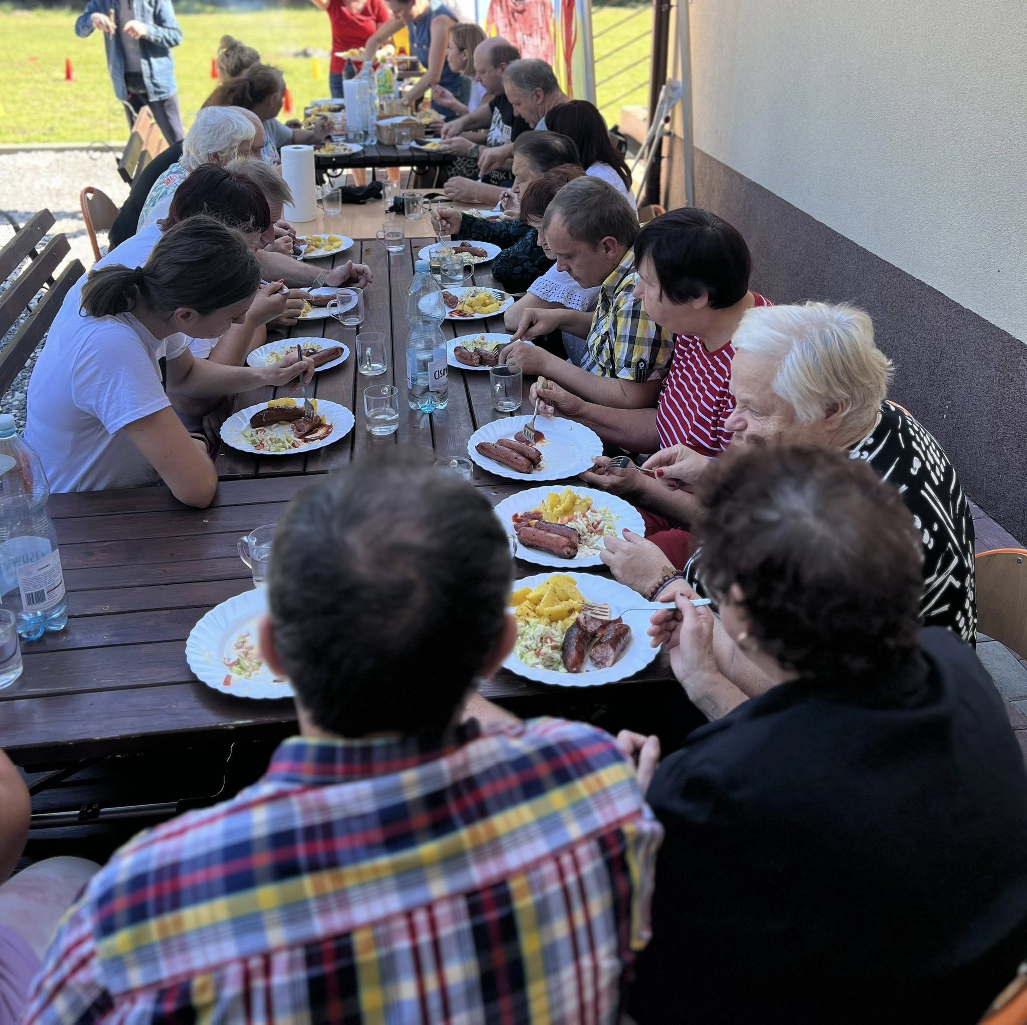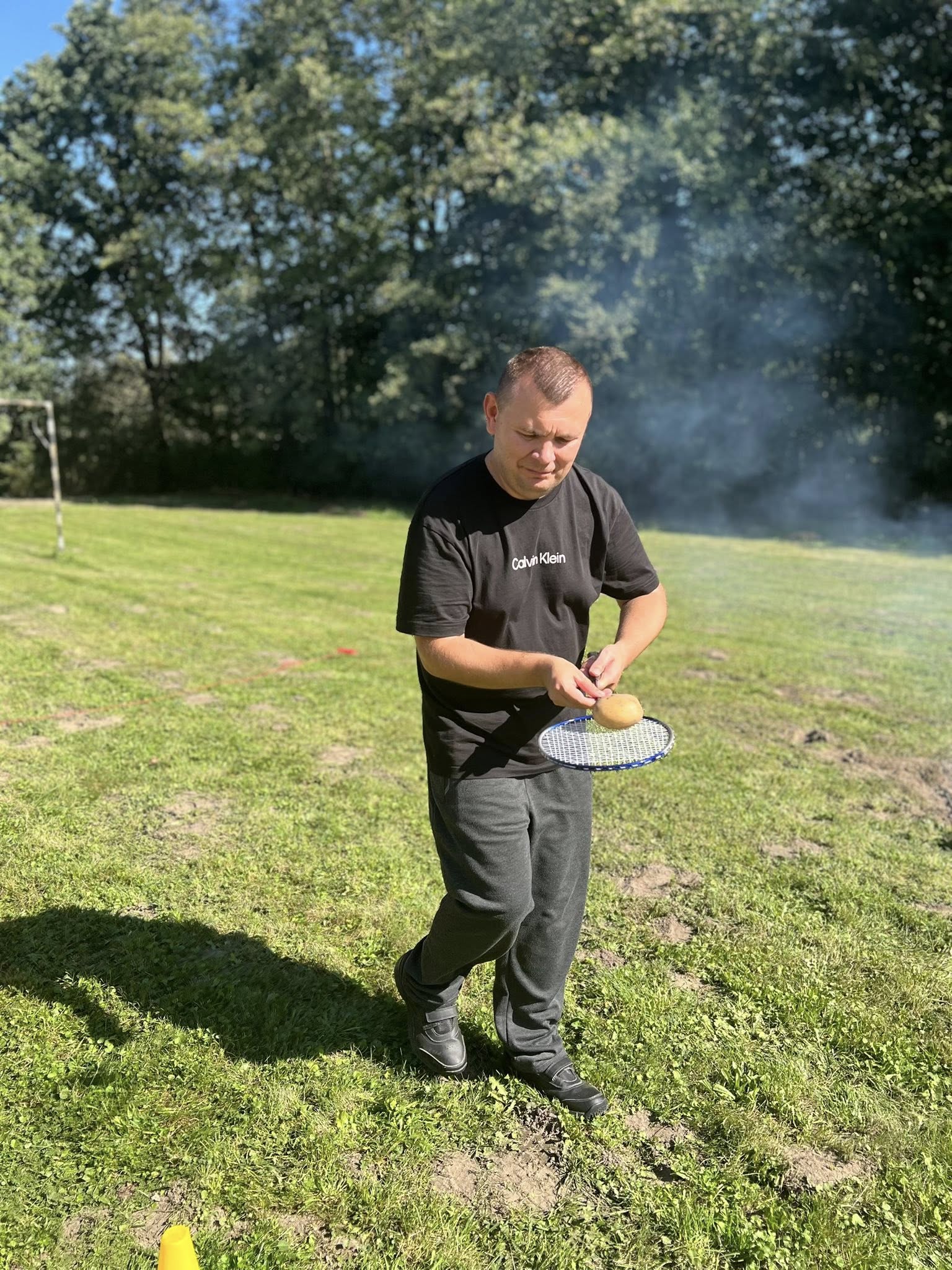 Piekliśmy też kiełbaski. Nie zabrakło wesołych konkurencji i zabaw ruchowych z udziałem ziemniaka w roli głównej. Po sportowych zmaganiach przyszedł czas na degustację i wspólną biesiadę. Tego dnia towarzyszyła nam piękna, słoneczna pogoda.