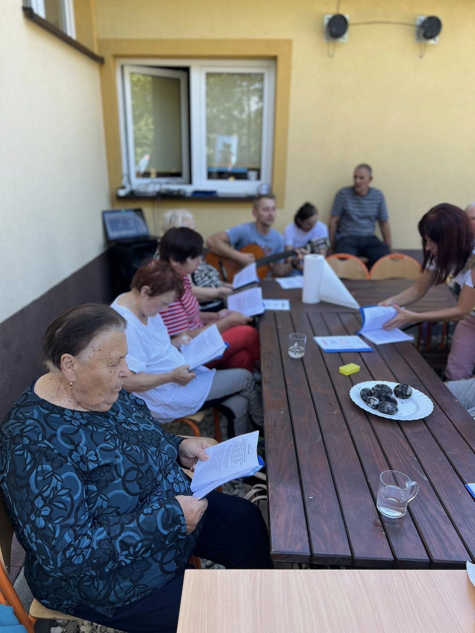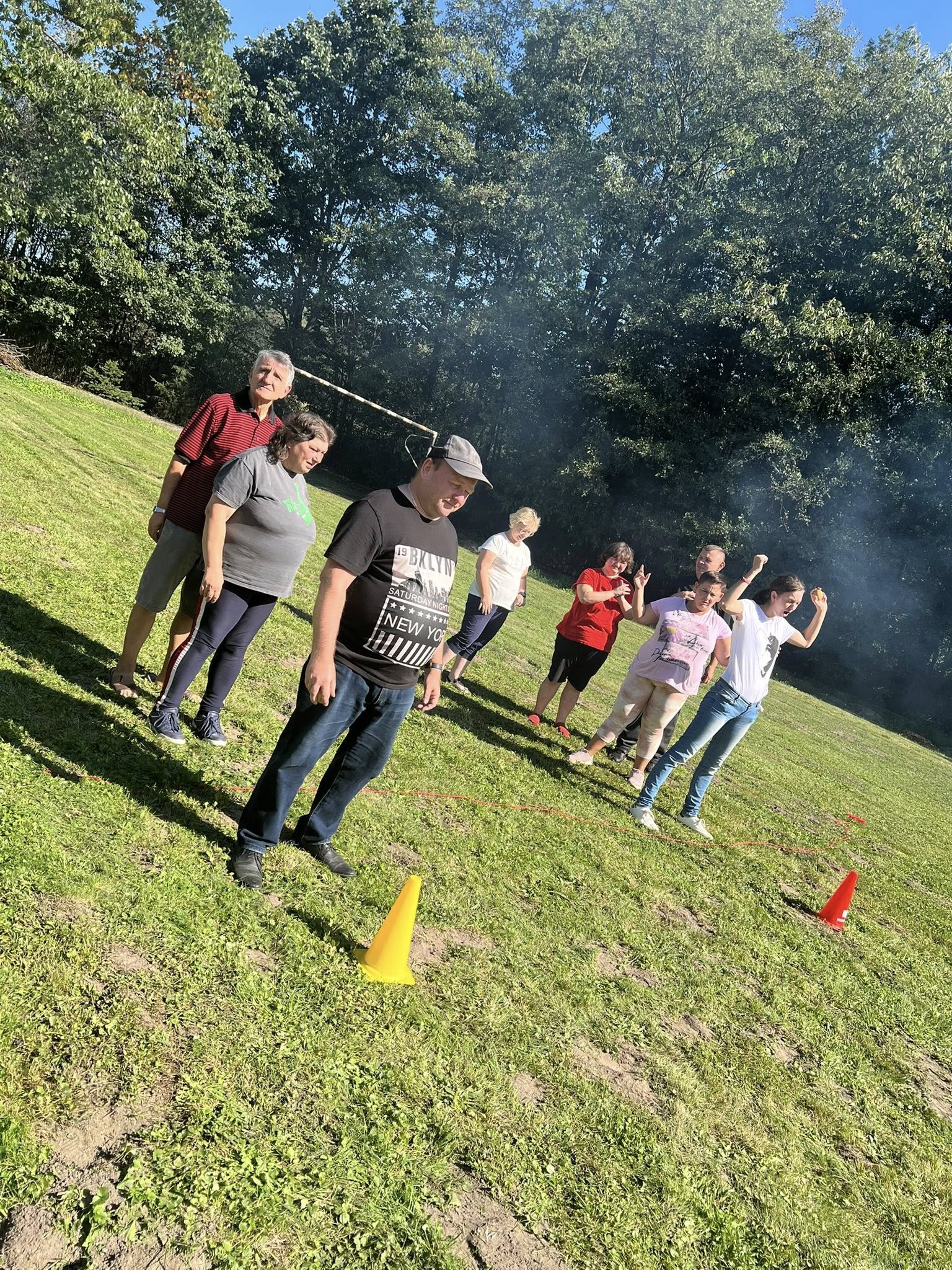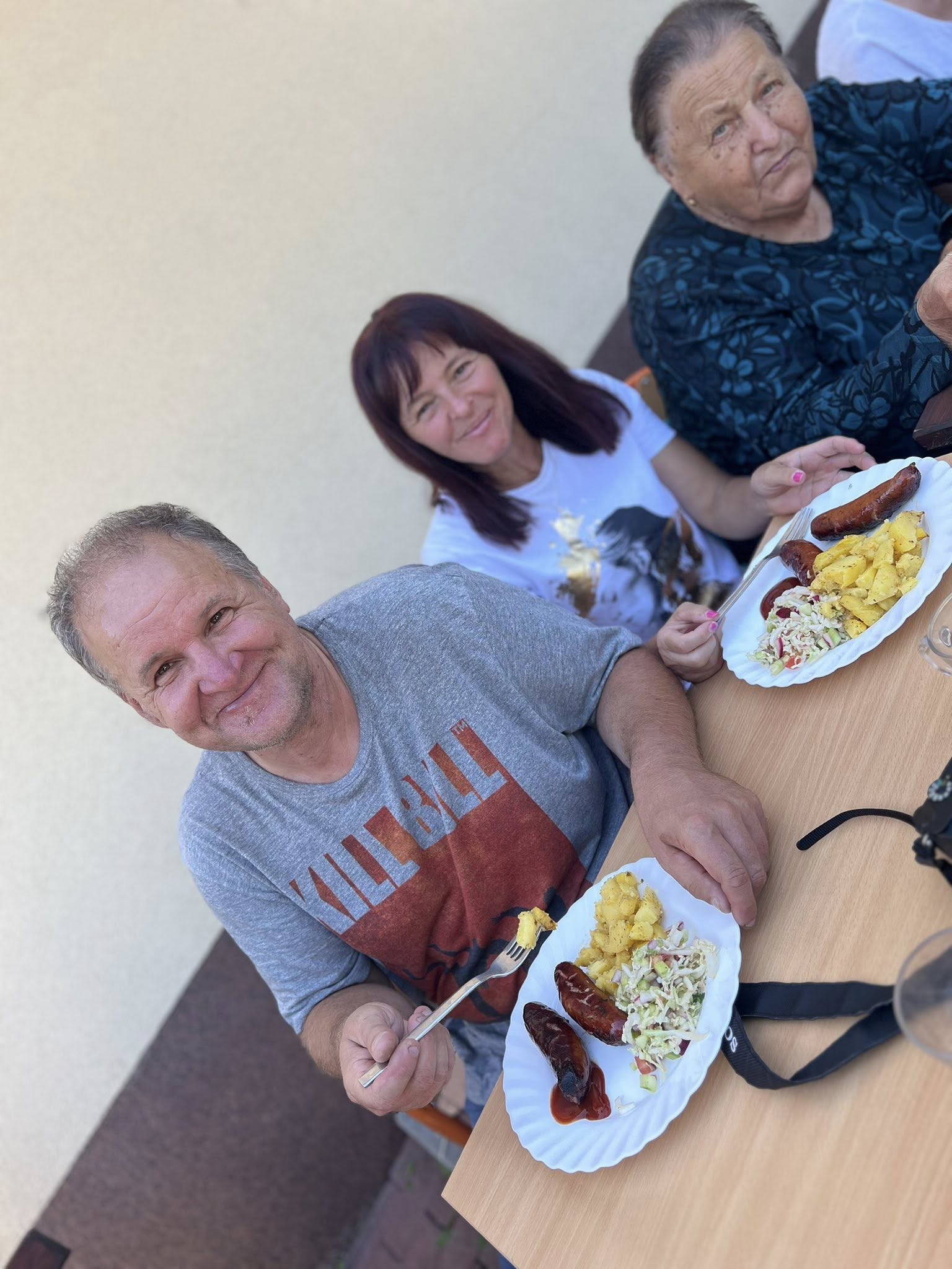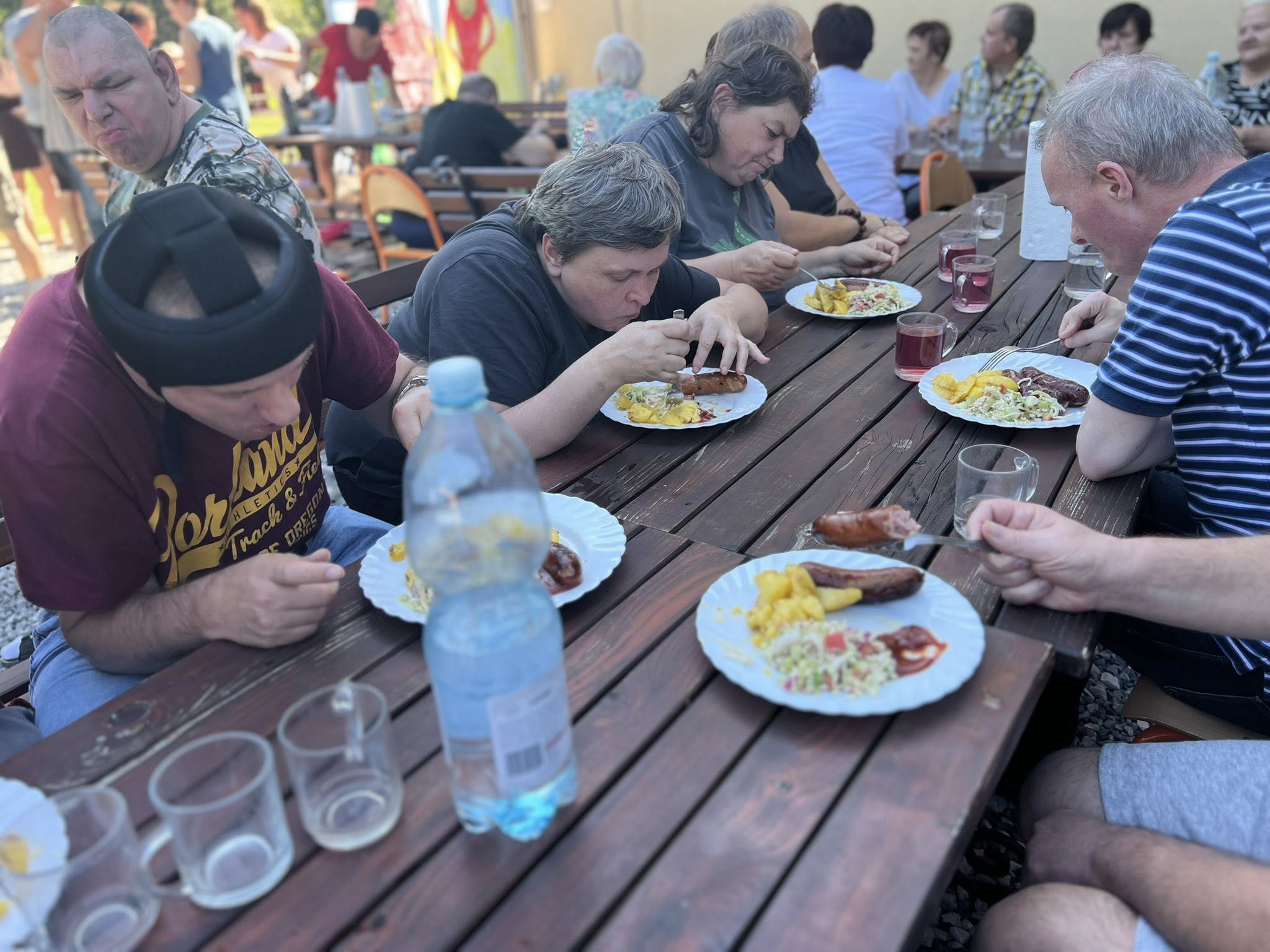 Piekliśmy też kiełbaski. Nie zabrakło wesołych konkurencji i zabaw ruchowych z udziałem ziemniaka w roli głównej. Po sportowych zmaganiach przyszedł czas na degustację i wspólną biesiadę. Tego dnia towarzyszyła nam piękna, słoneczna pogoda.