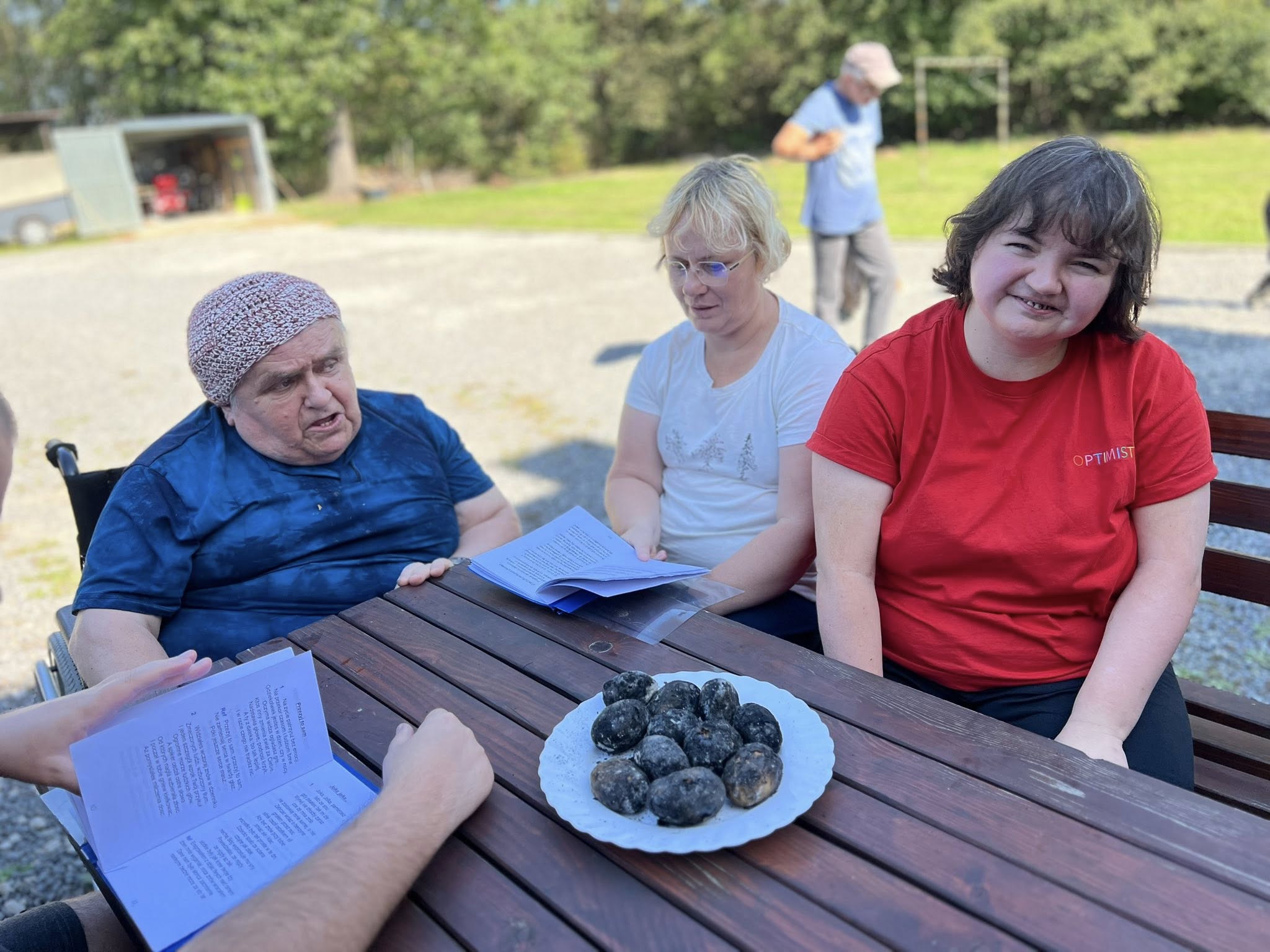Końcem września zorganizowaliśmy w placówce ognisko z okazji dnia pieczonego ziemniaka oraz powitania jesieni. Spotkanie rozpoczęliśmy od wspólnych przygotowań i rozpalenia ogniska, w którym piekły się ziemniaki.