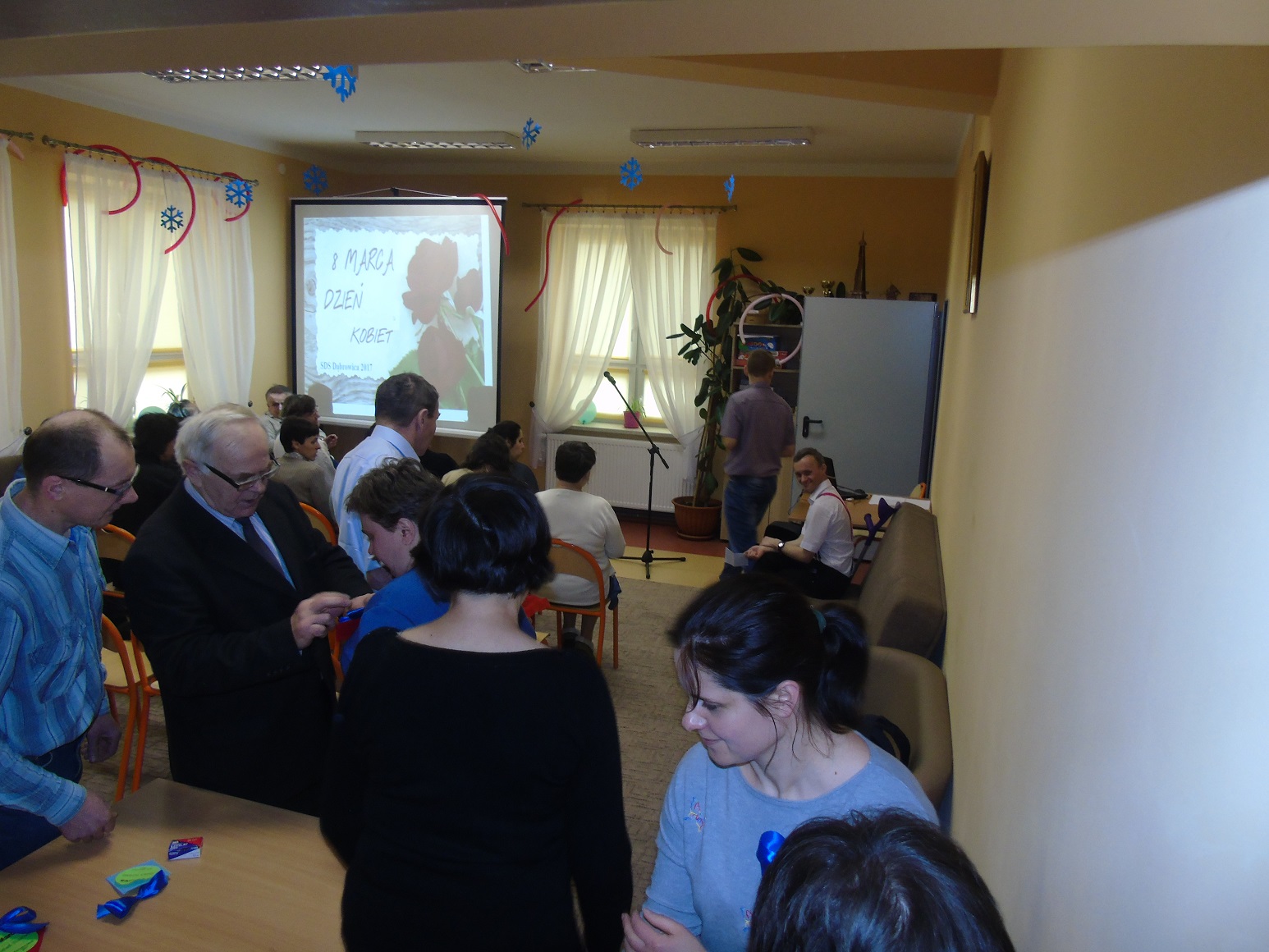 8 marca 2017r. tuż przed obiadem wszystkie Panie zostały zaproszone na świetlicę, gdzie cała konspiracja ujrzała światło dzienne. Każda z Pań na wstępie otrzymała kotylion oraz słodkie upominki, następnie głos zabrali nasi Mężczyźni. Po licznych życzeniach skierowanych do Kobiet, wystąpił Czadoman z piosenką „Kocham Was”. Nie mogło również zabraknąć szampana i tradycyjnego „Sto lat”, a na zakończenie daliśmy się ponieść fantazji z sesją zdjęciową używając zabawnych gadżetów. Bardzo serdecznie dziękujemy naszym Mężczyznom na czele z Panem Hubertem, za pamięć o Kobietach, piękne życzenia, kwiaty oraz słodkości. Dziękujemy!